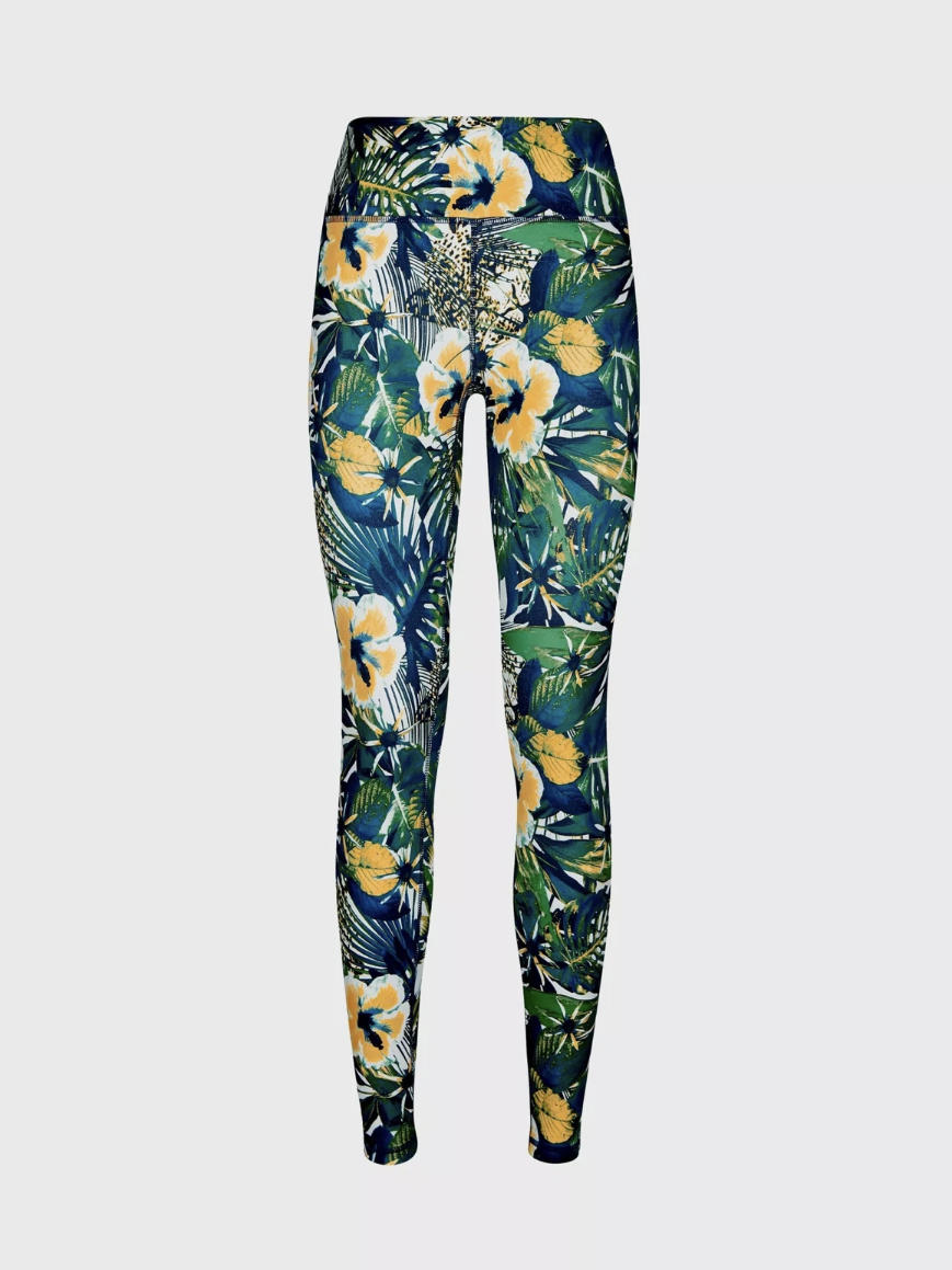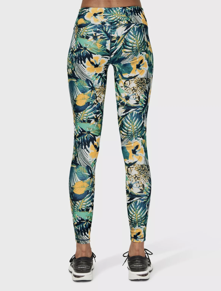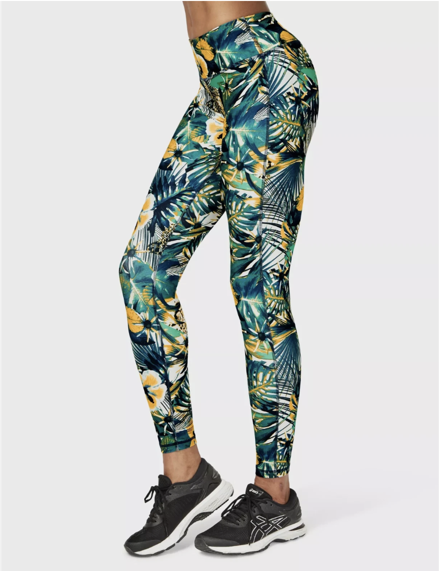 Sweaty Betty Green Hibiscus Floral Print Full Length Contour Workout Leggings