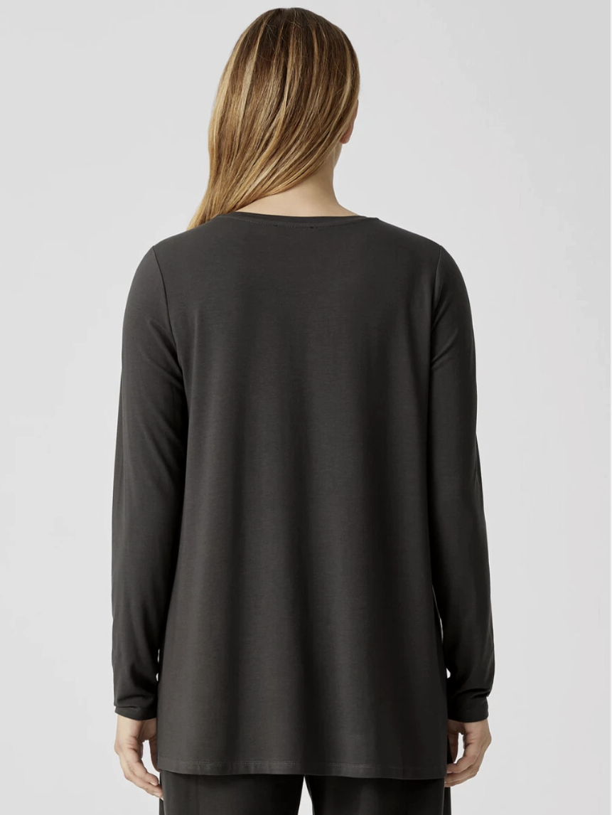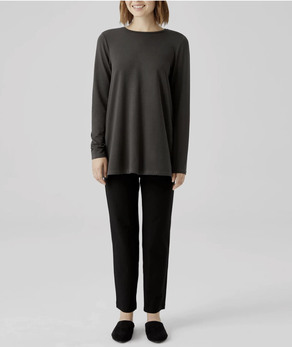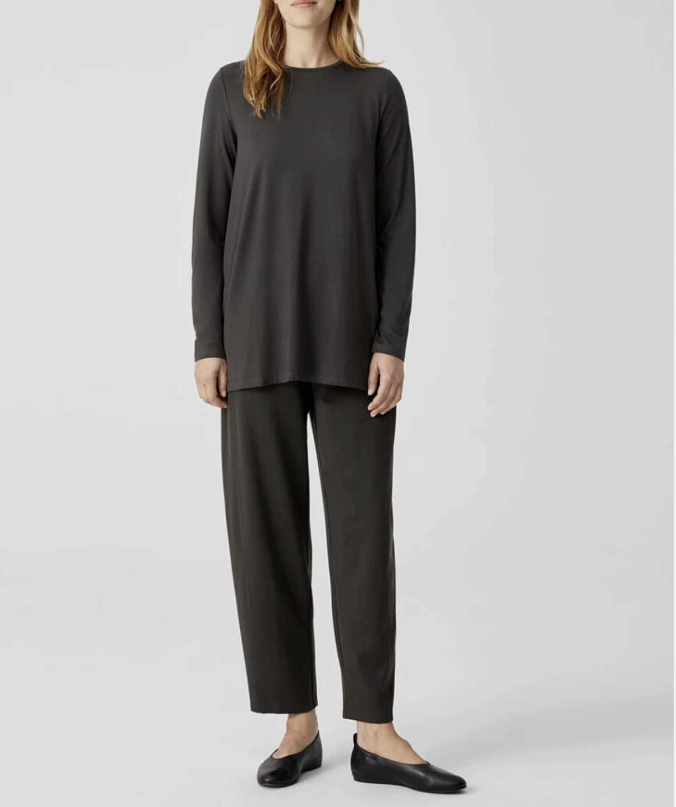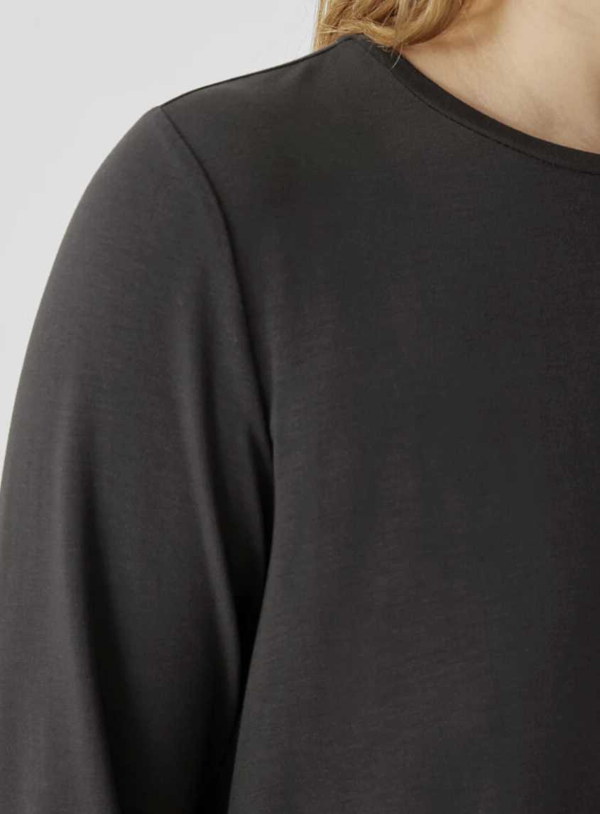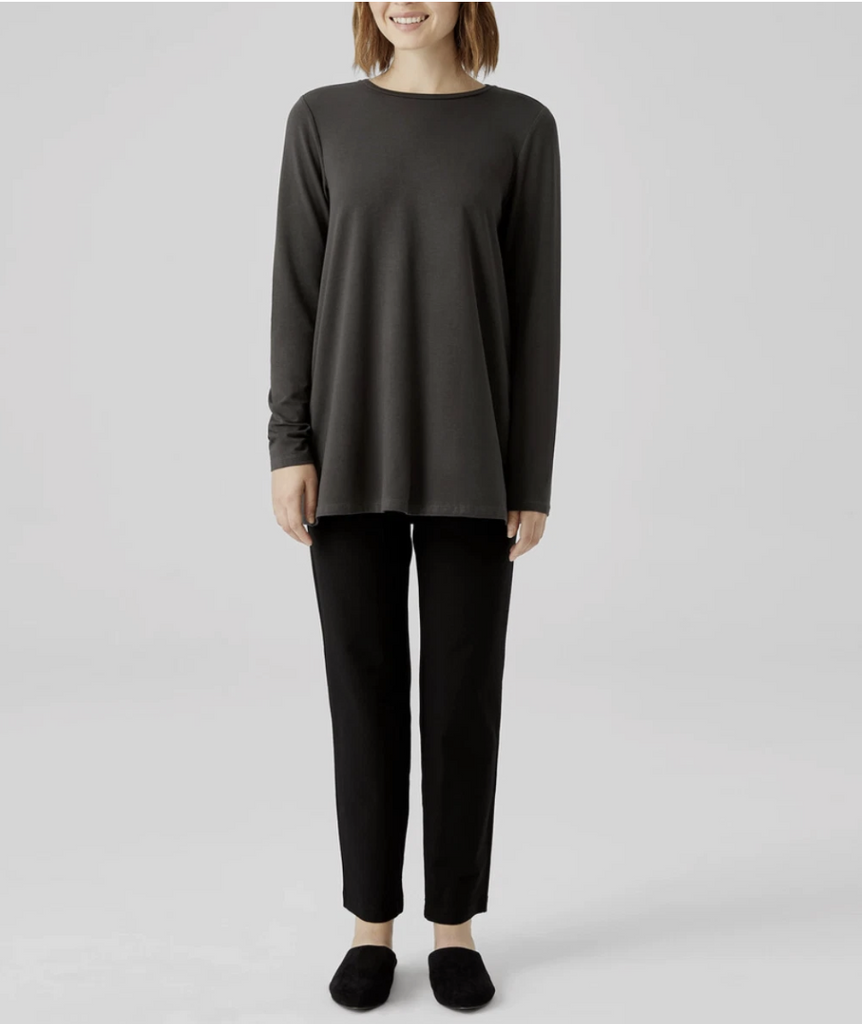 Eileen Fisher Graphite Fine Jersey Crew Neck Long Length Top