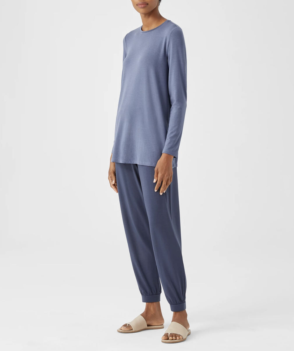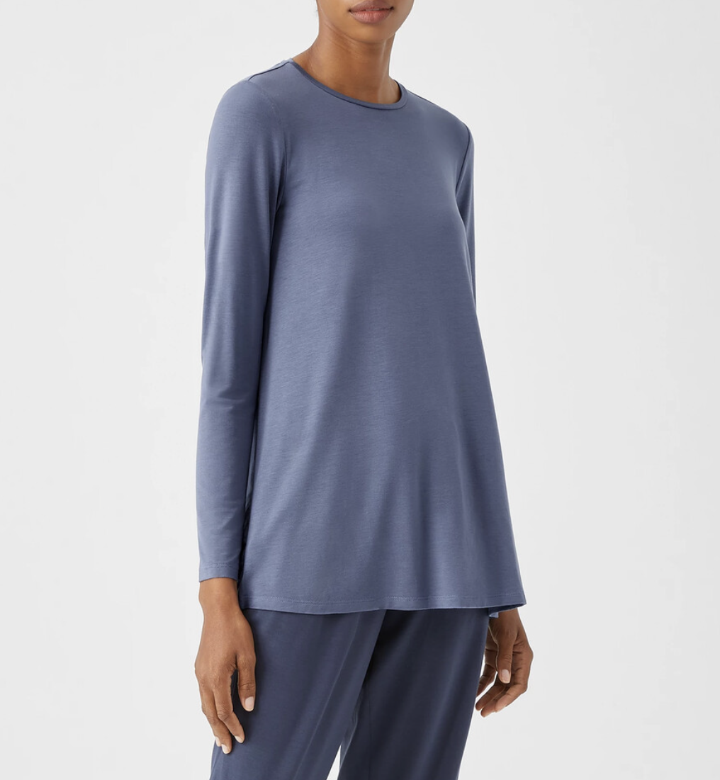 Eileen Fisher Twilight Fine Jersey Crew Neck Long Length Top