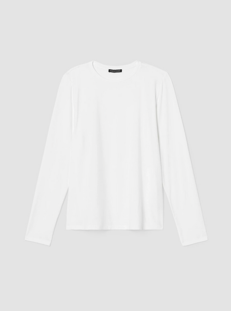 Eileen Fisher White Fine Jersey Crew Neck Basic Length Top
