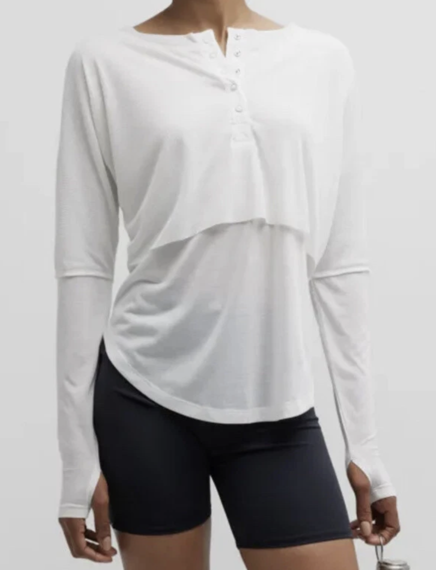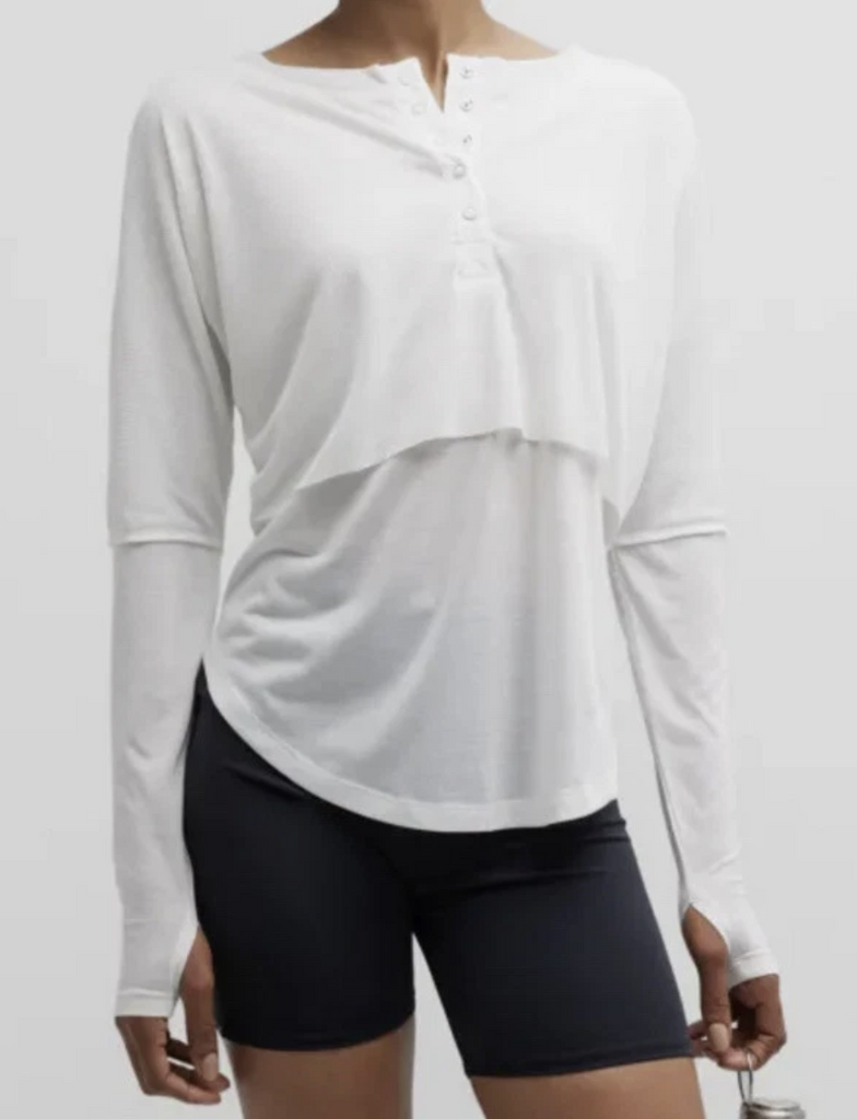 Classic lightweight Henley featured in a relaxed fit and soft fabrication with a layered design and thumbholes at both wrists.