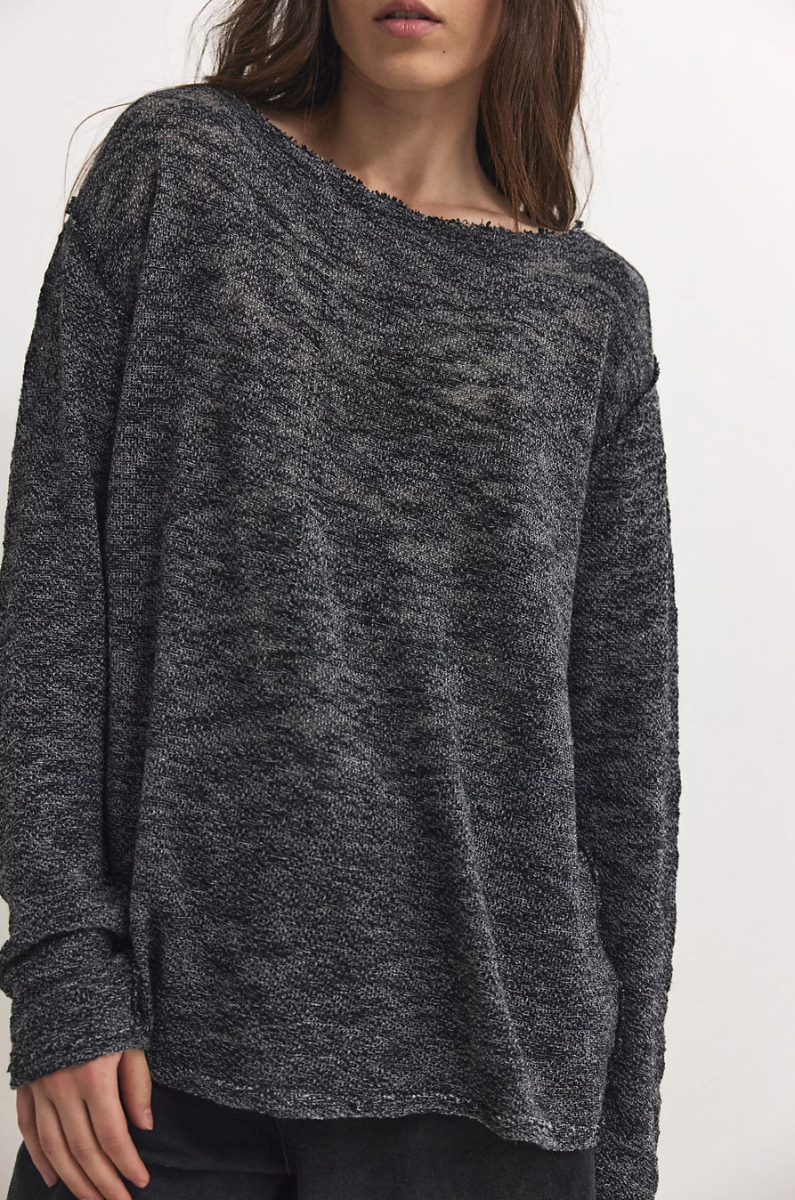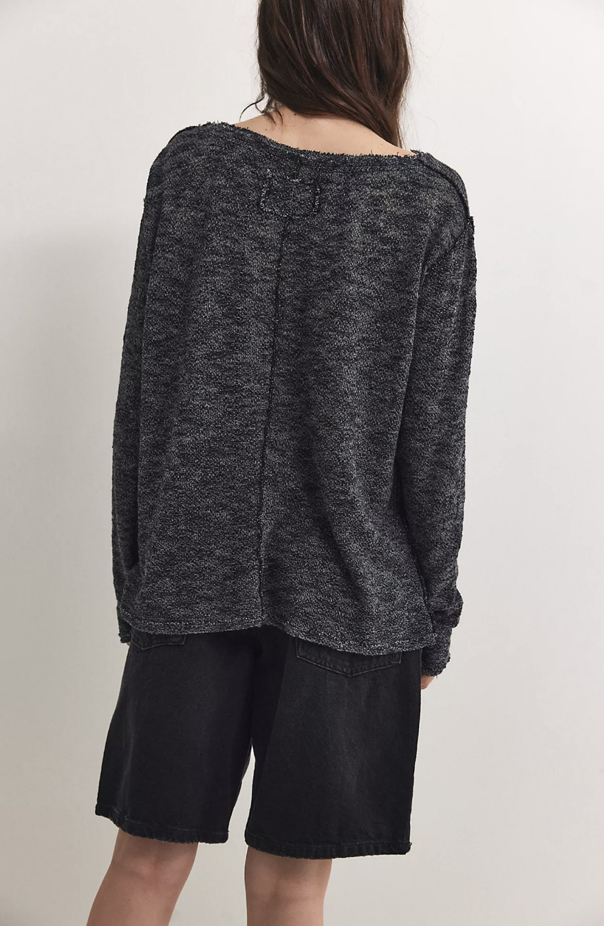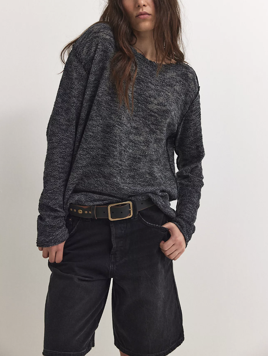 Take it easy in this lightweight, long-sleeve tee from We The Free, featured in a relaxed style and semi-sheer heathered knit with raw trim for the perfect touch of edge.