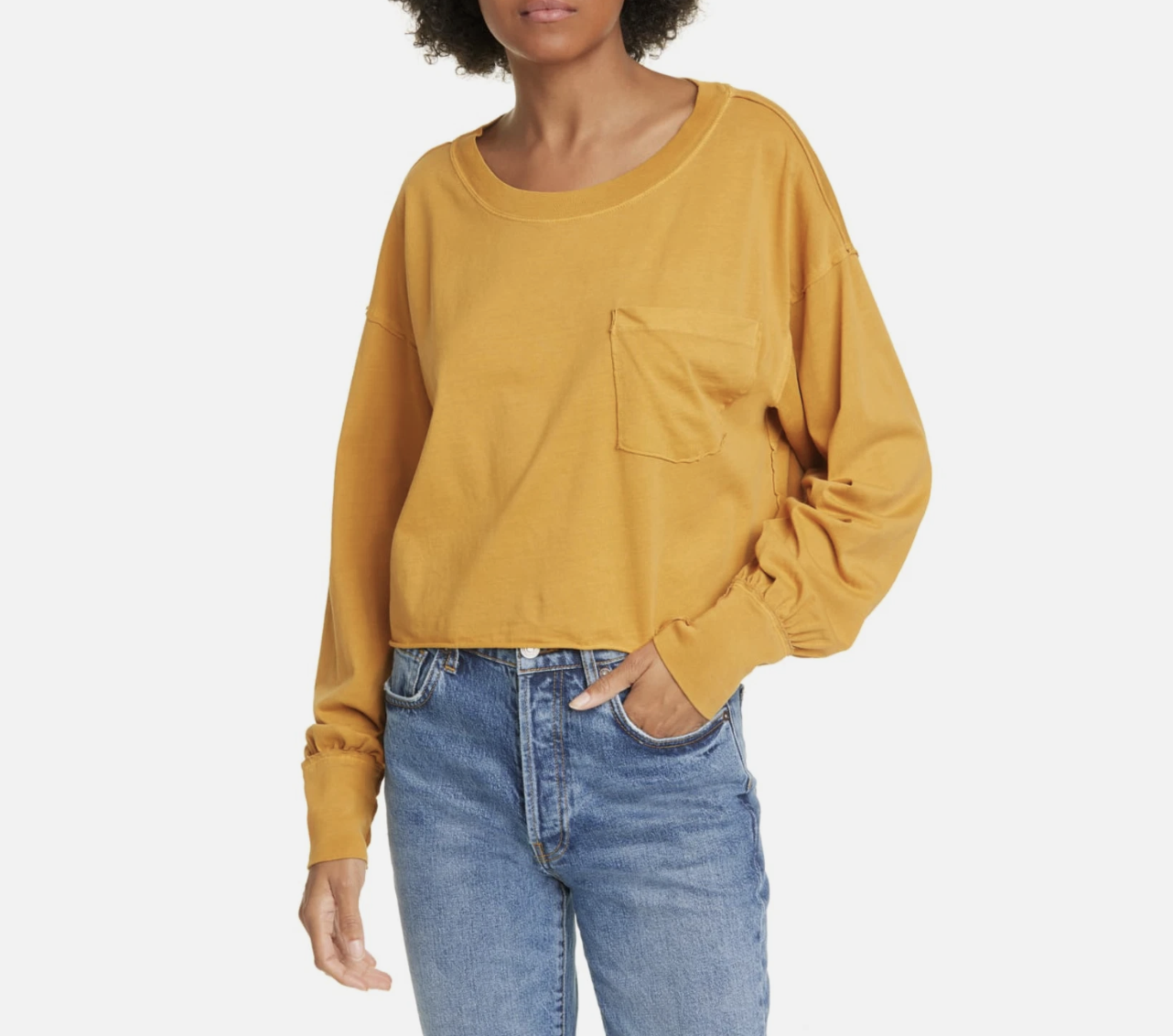 Free People - We The Free - Copper Long Sleeve Cotton Austin Cropped Tee Top