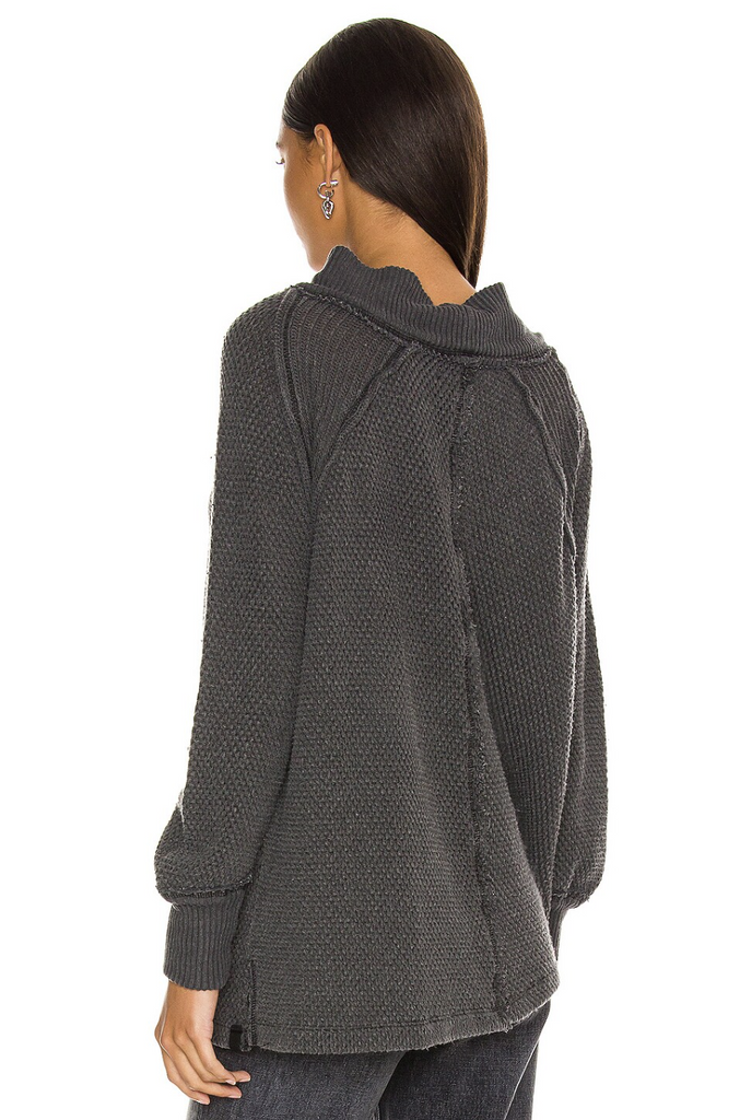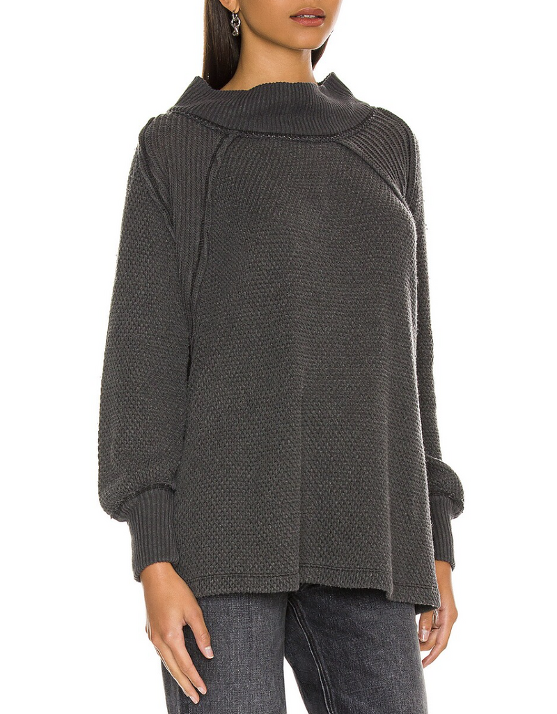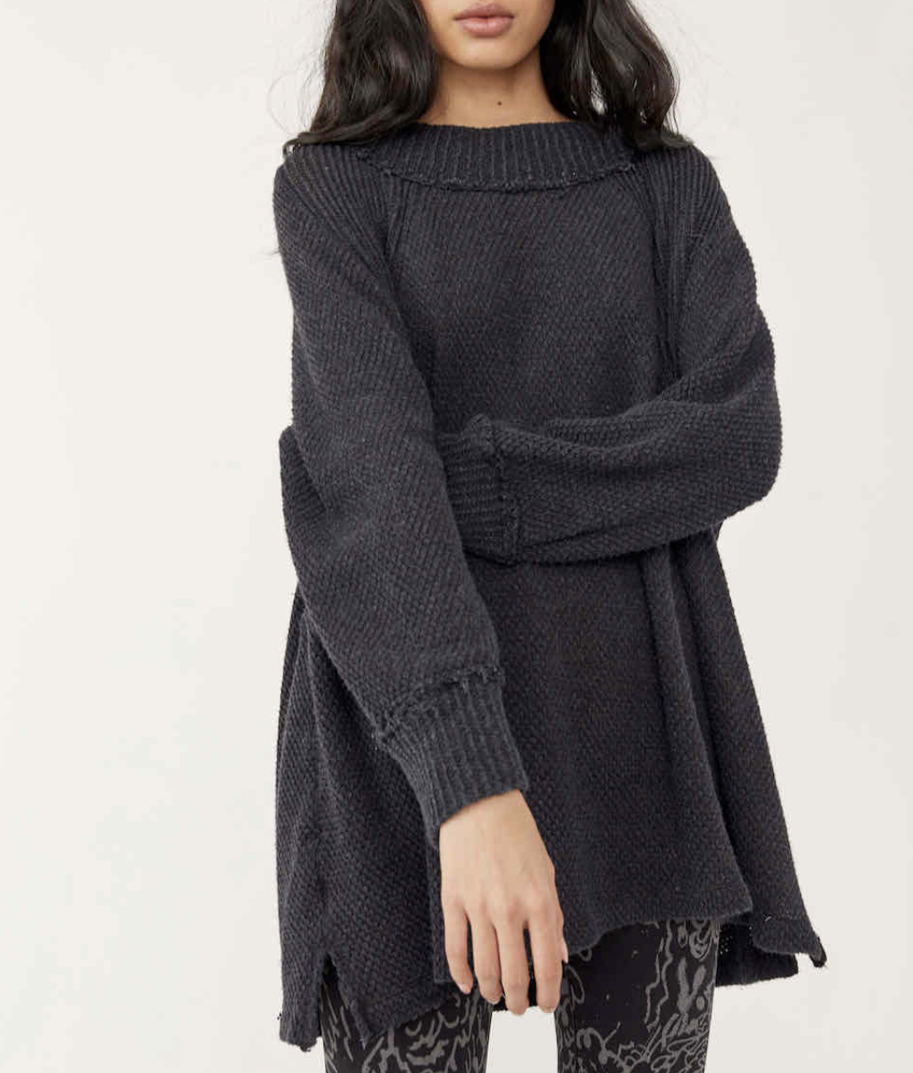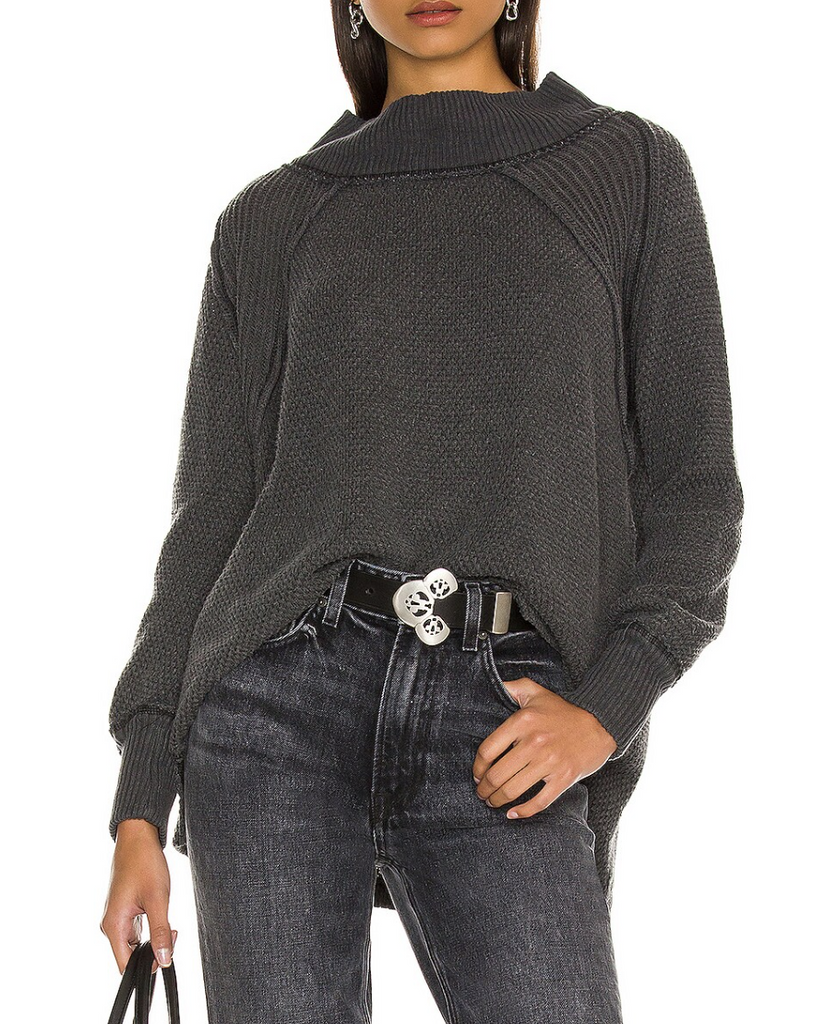 Free People “She’s a Keeper” – fabulous cotton-blend tunic sweater featuring an easy fit, mock neck, textured knits, ribbed neck and cuffs, side slits, medium weight fabric, slightly oversize fit. A very cool and cozy style, indeed!