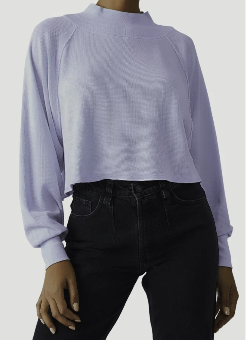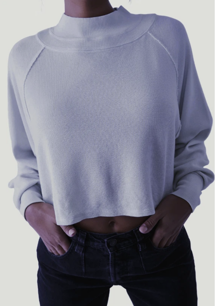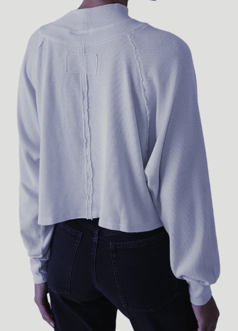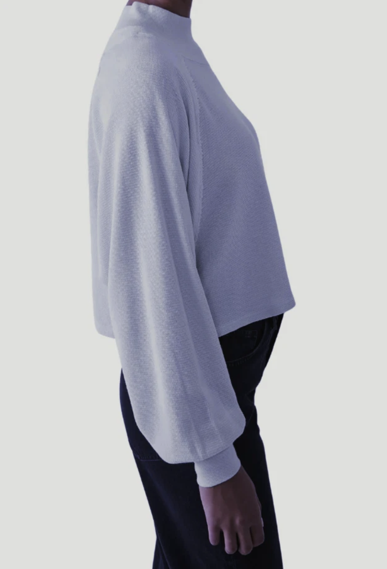 Features: Turtle-inspired neckline; Waffle knit fabrication; Slightly exaggerated sleeves
