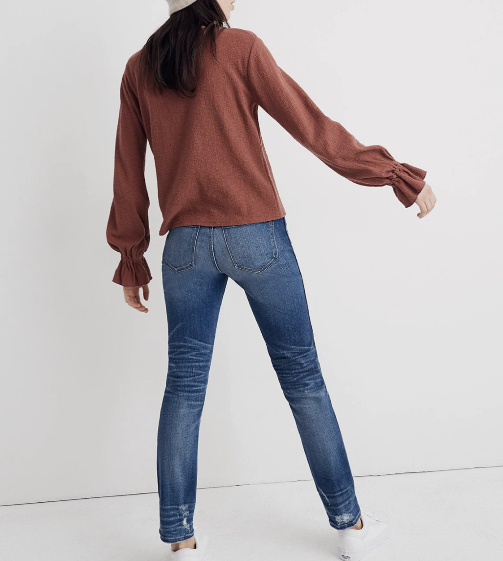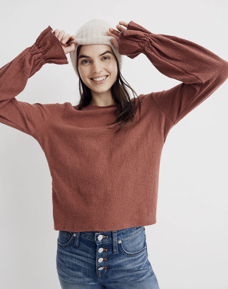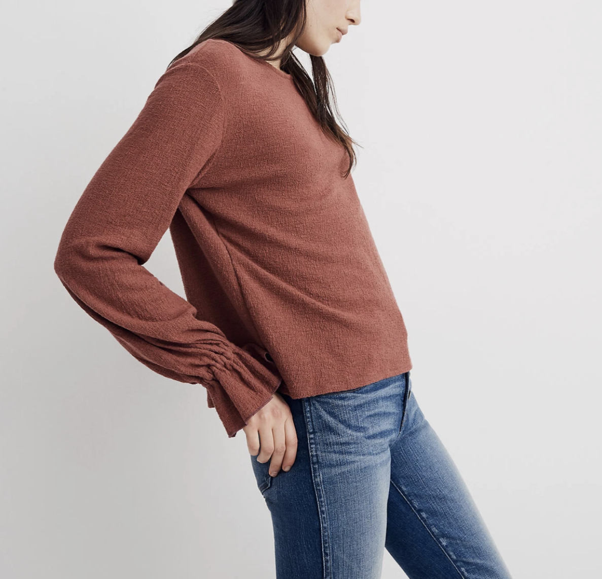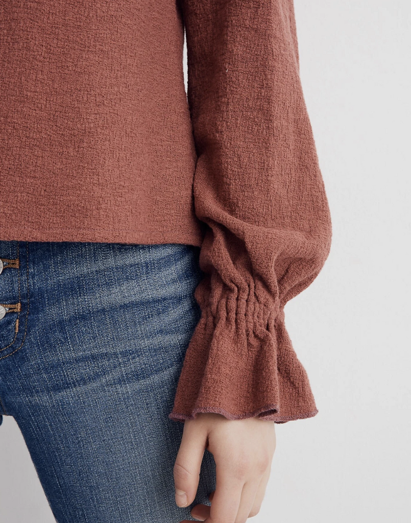 Madewell Texture & Thread Beige Long Sleeve Ruffle Cuff Cotton Top