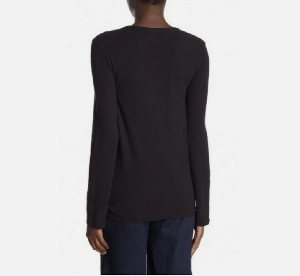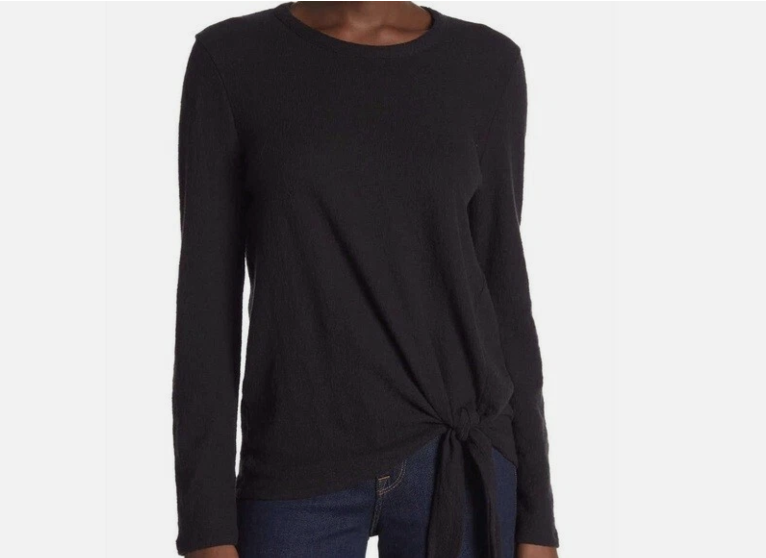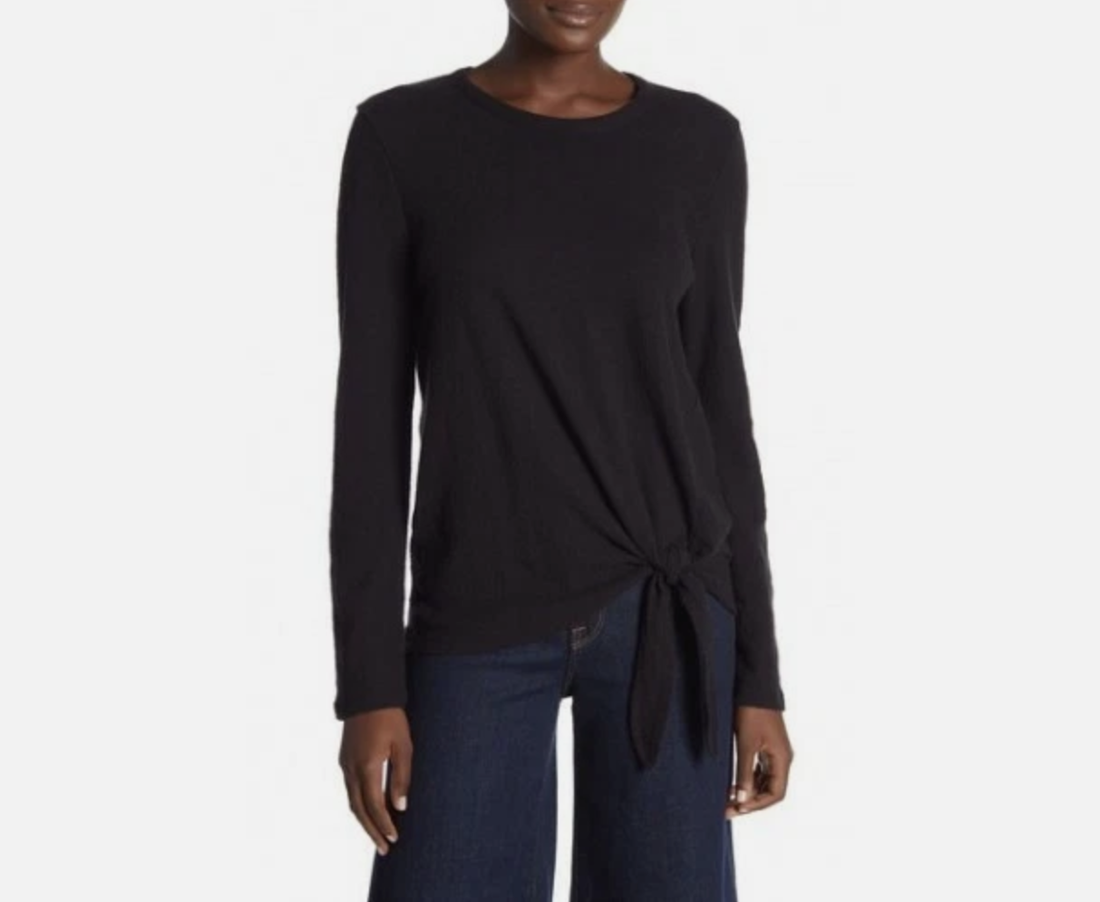 Madewell Texture & Thread Black Long Sleeve Side Tie Cotton Top