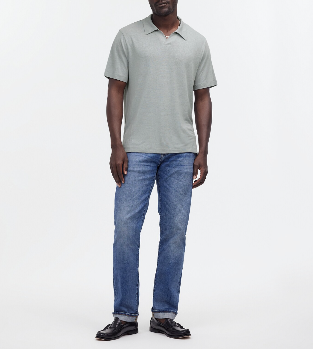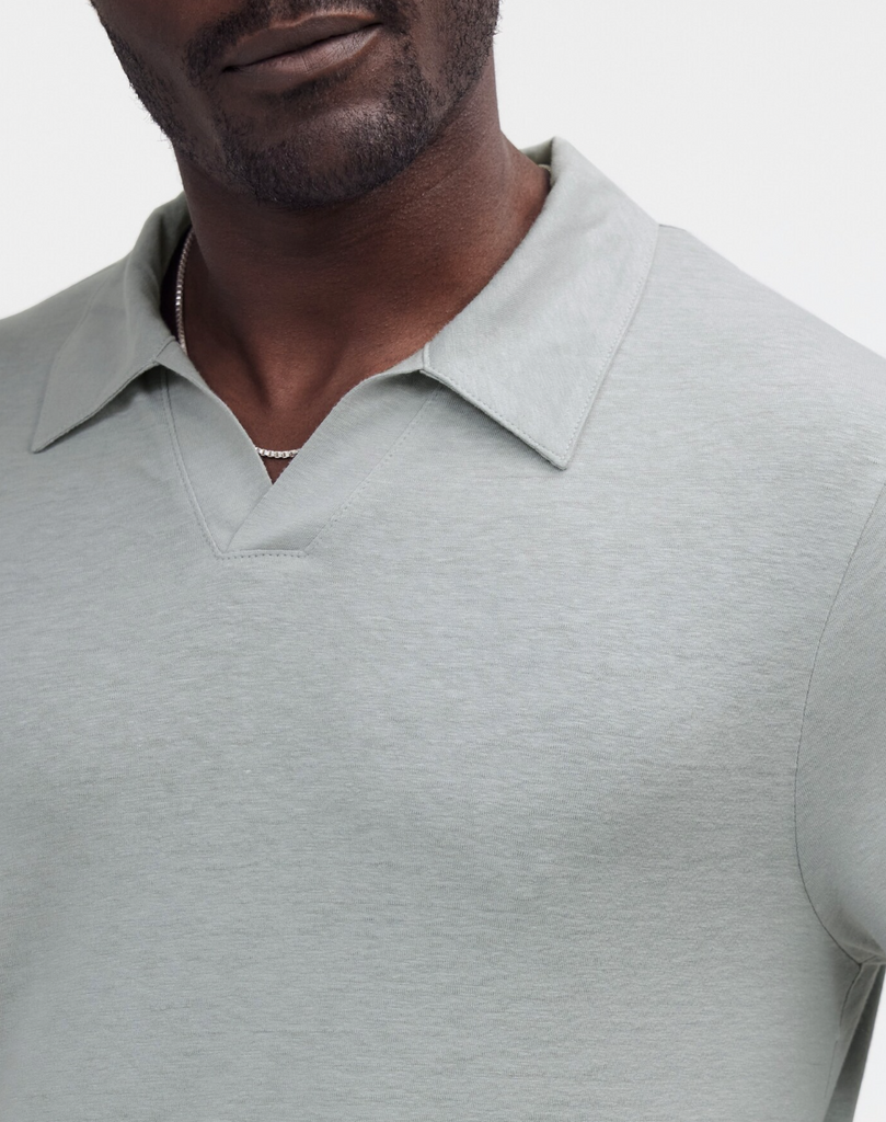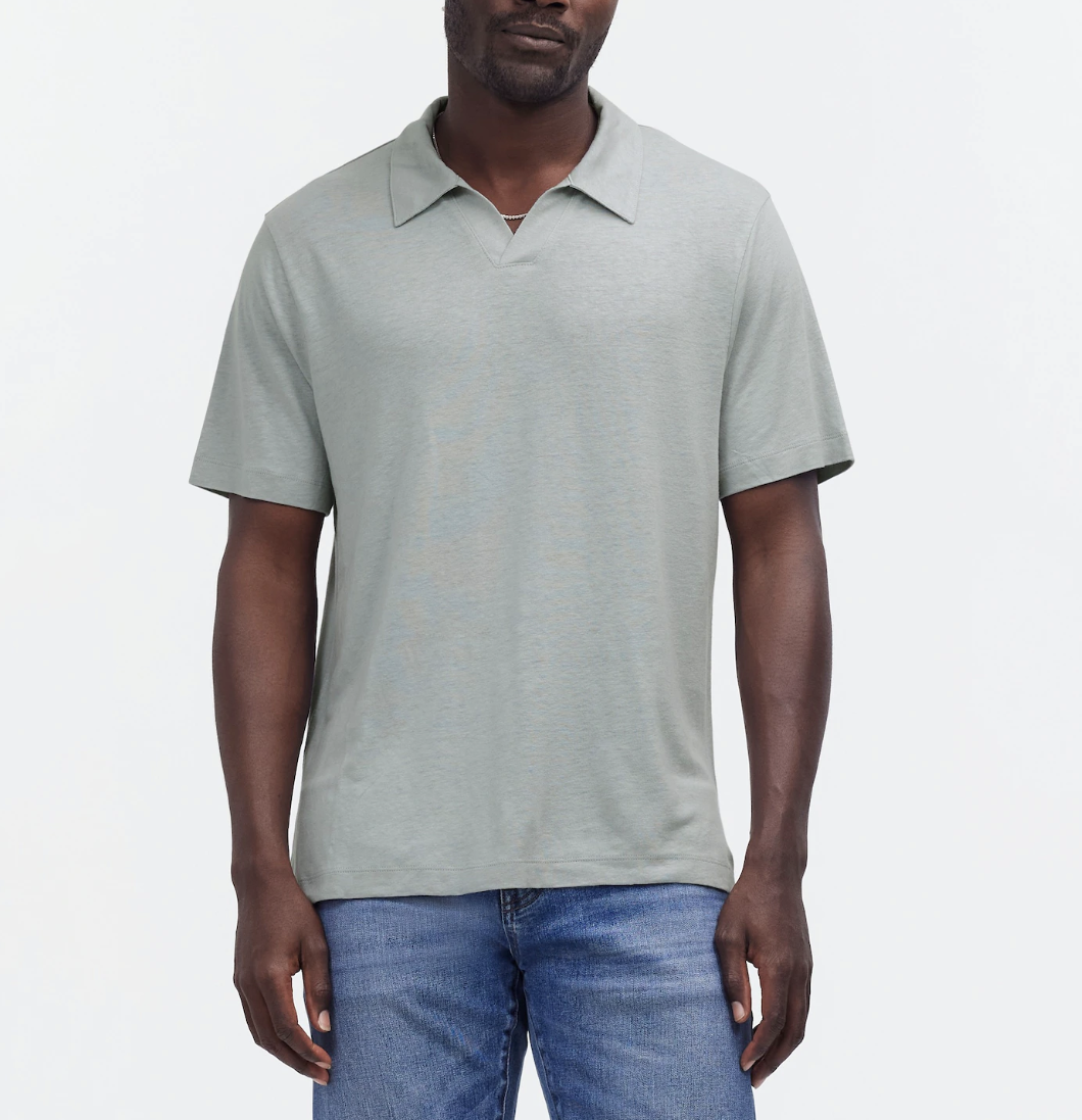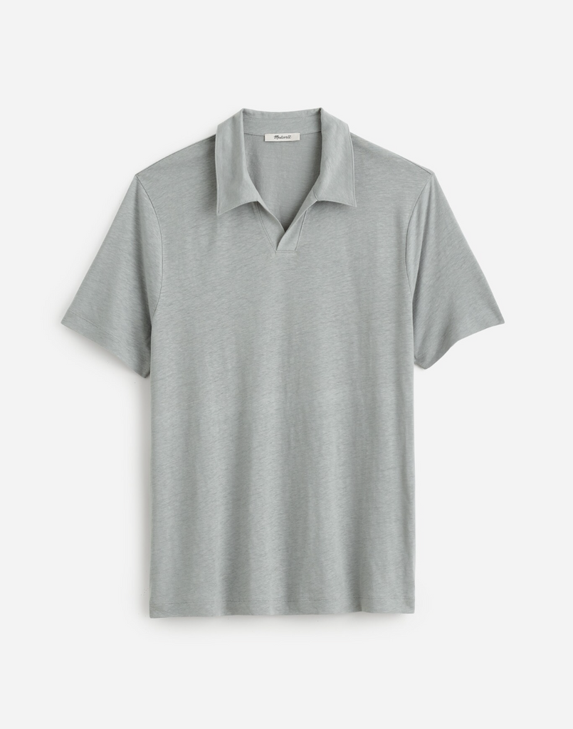 Made from an airy linen-blend knit, this old-school polo shirt has a lightweight feel and classic Johnny collar.