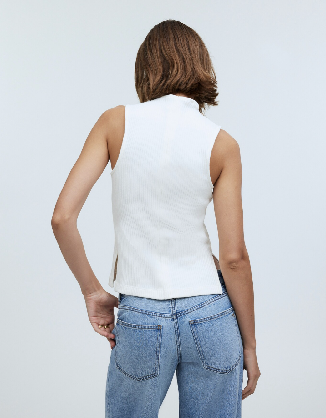 Madewell Lighthouse Ribbed Side-Slit Mock Neck Tank Top