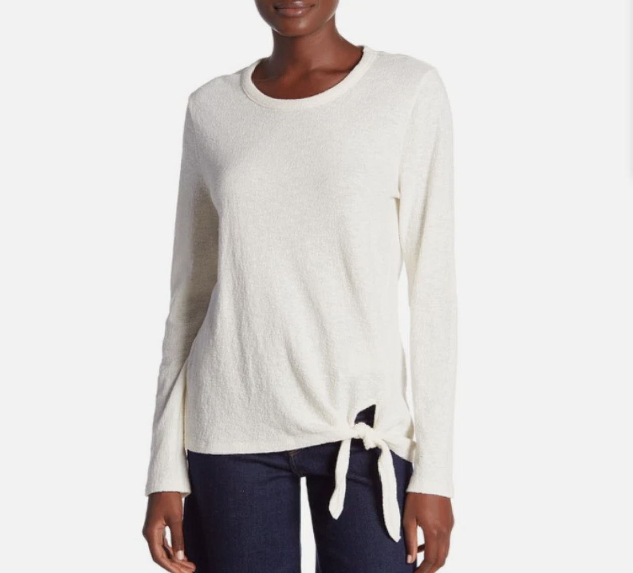 Madewell Texture & Thread Ivory Long Sleeve Side Tie Cotton Top