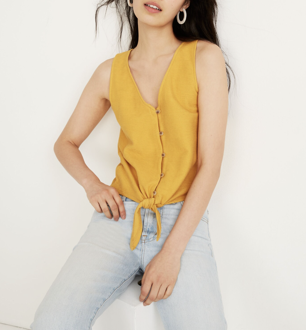 Madewell Texture & Thread Tungsten Glow Button-Front Tie Tank Top