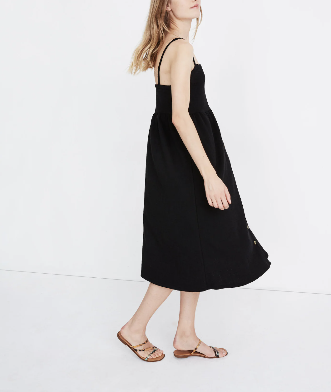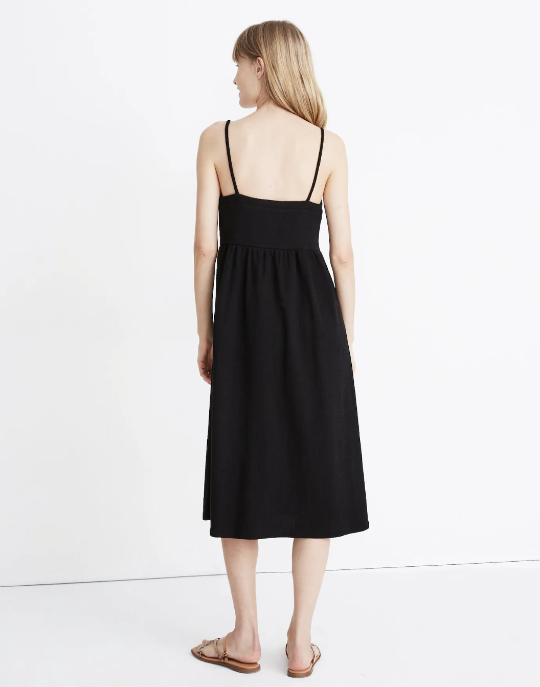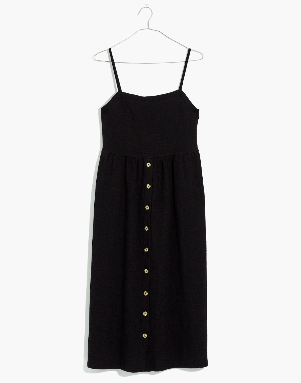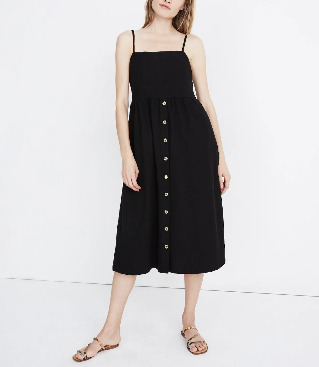 Madewell True Black Cami Button-Front Textured Midi Dress
