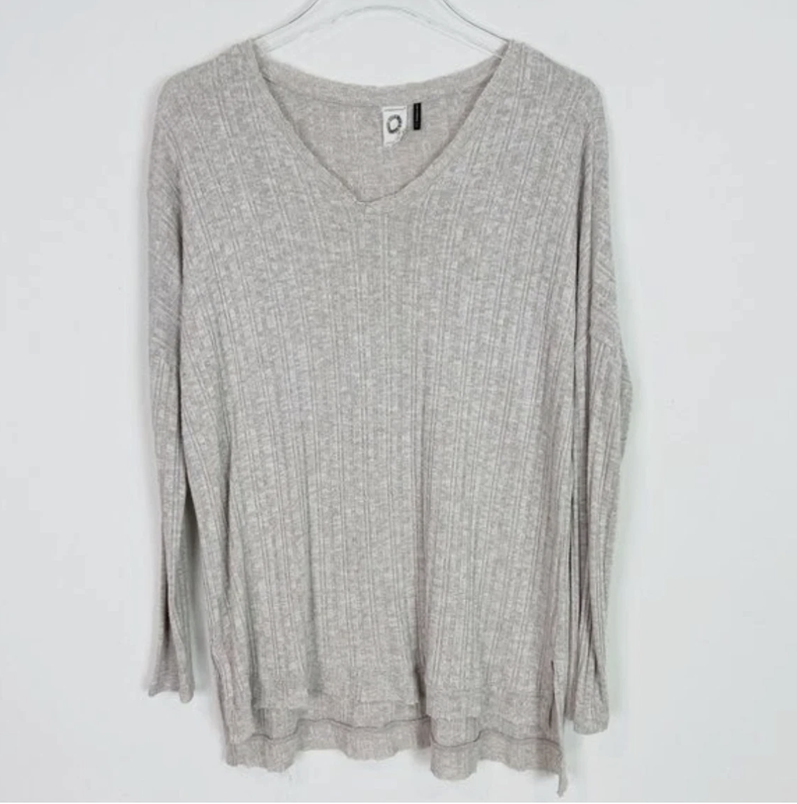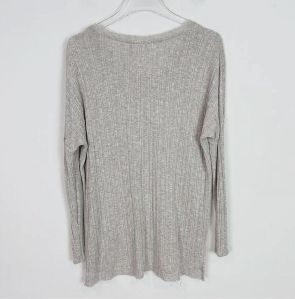 Anthropologie Akemi + Kin Oatmeal Heather Ribbed Long Sleeve V-Neck Top
