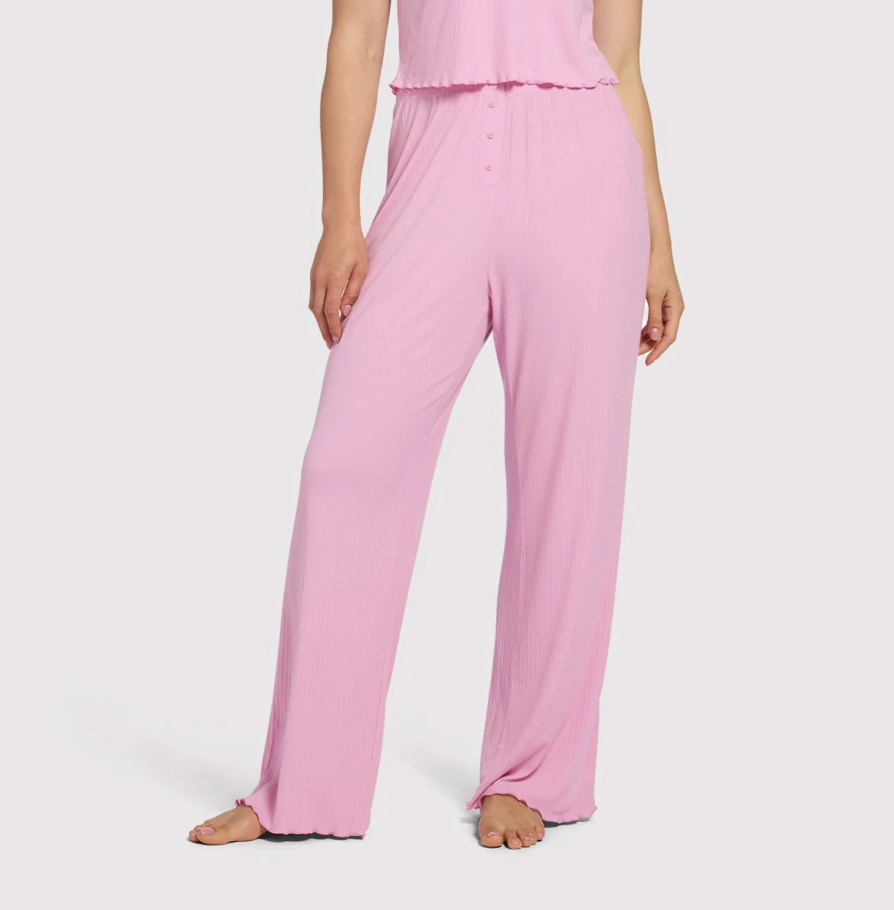 Nuuds Bubblegum Pink Elastic Waist Mini Rib Wide Leg Pajama Pant