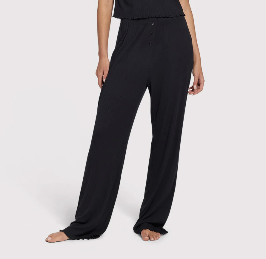 Nuuds Black Elastic Waist Mini Rib Wide Leg Pajama Pant