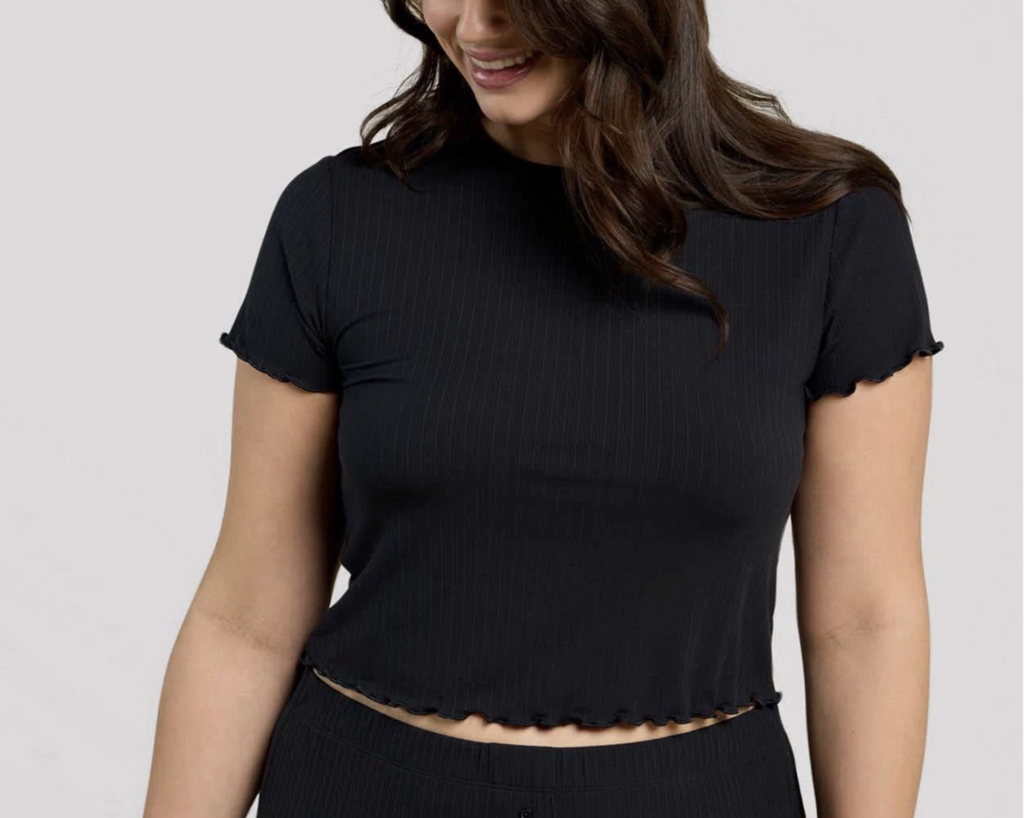Nuuds Black Short Sleeve Soft Mini Rib Pajama Tee