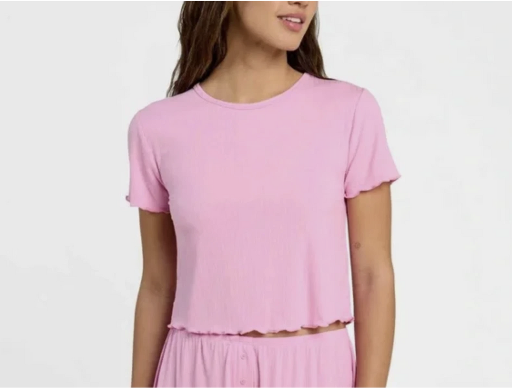 Nuuds Bubblegum Pink Short Sleeve Soft Mini Rib Pajama Tee
