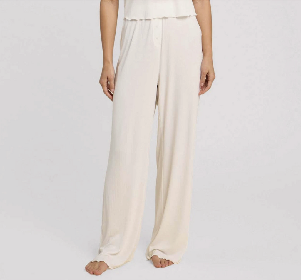 Nuuds Pearl Elastic Waist Mini Rib Wide Leg Pajama Pant
