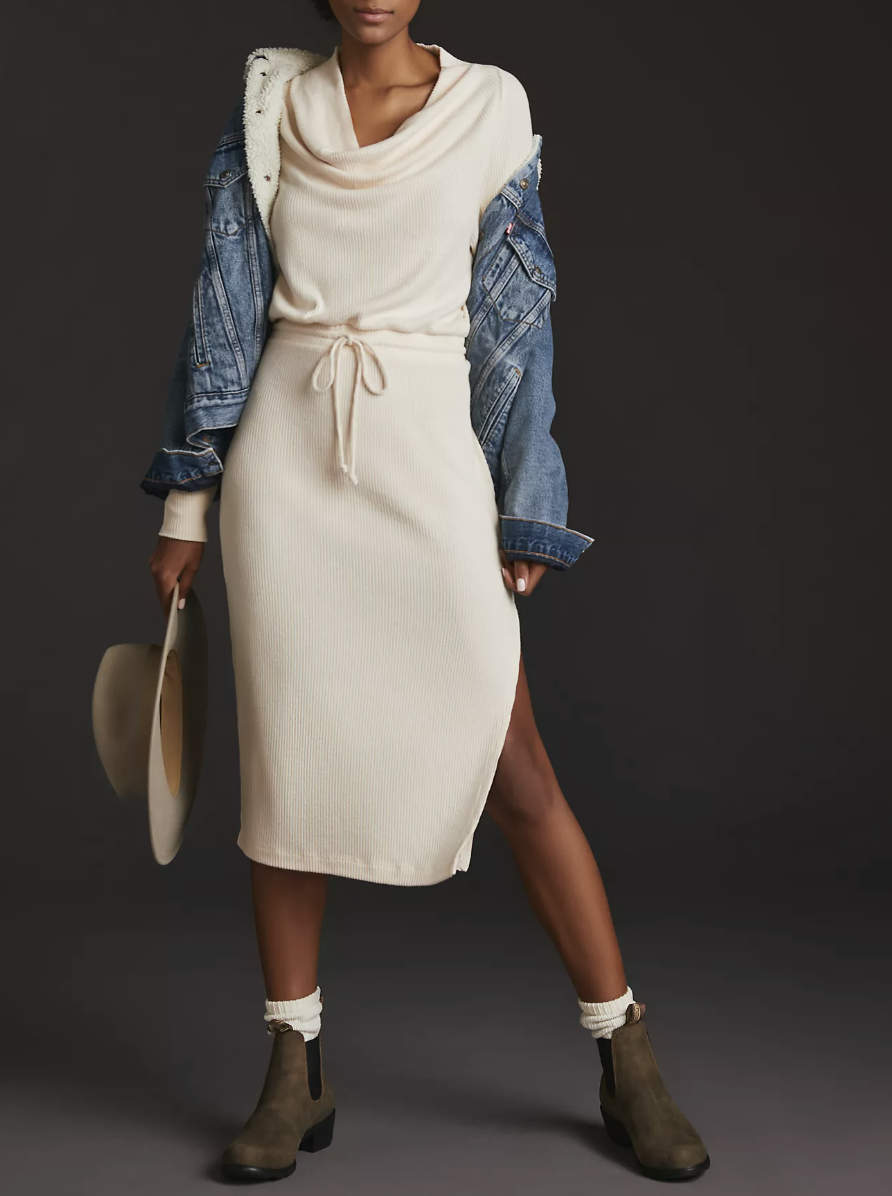 Daily Practice by Anthropologie Cream Ivory Cowl Neck Midi Dress