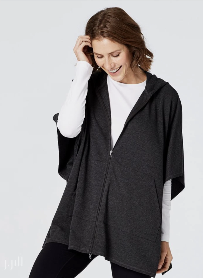 J.Jill 3/4 Sleeve Heather Charcoal Fit At Ease Zip-Front Poncho