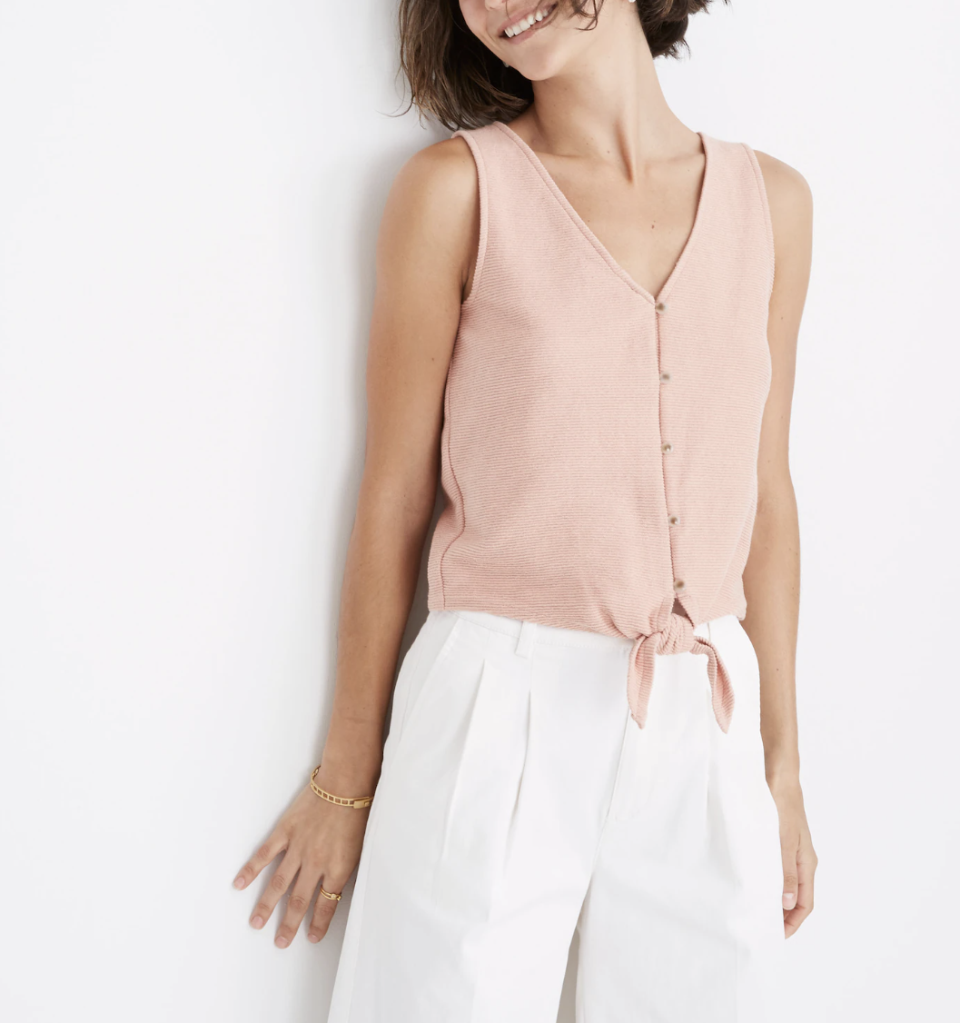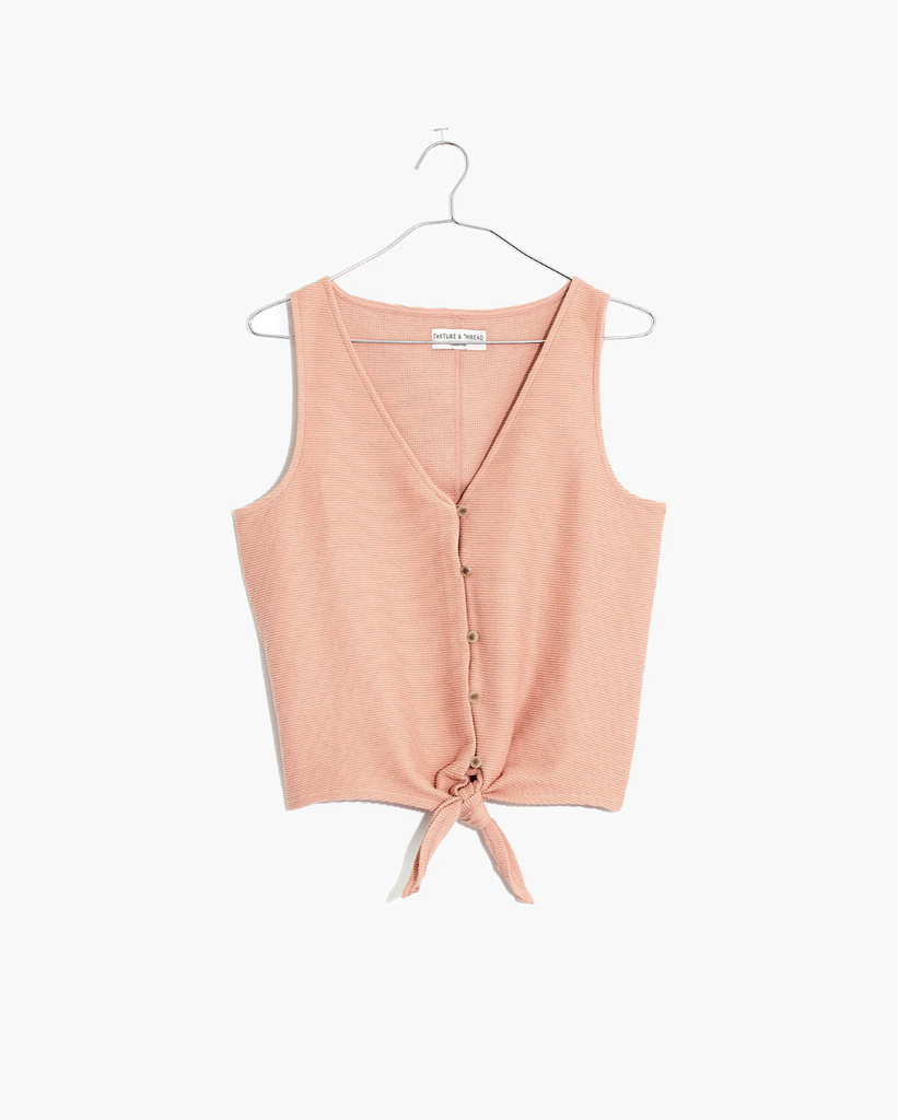 Madewell Texture & Thread Brick Dust Button-Front Tie Tank Top