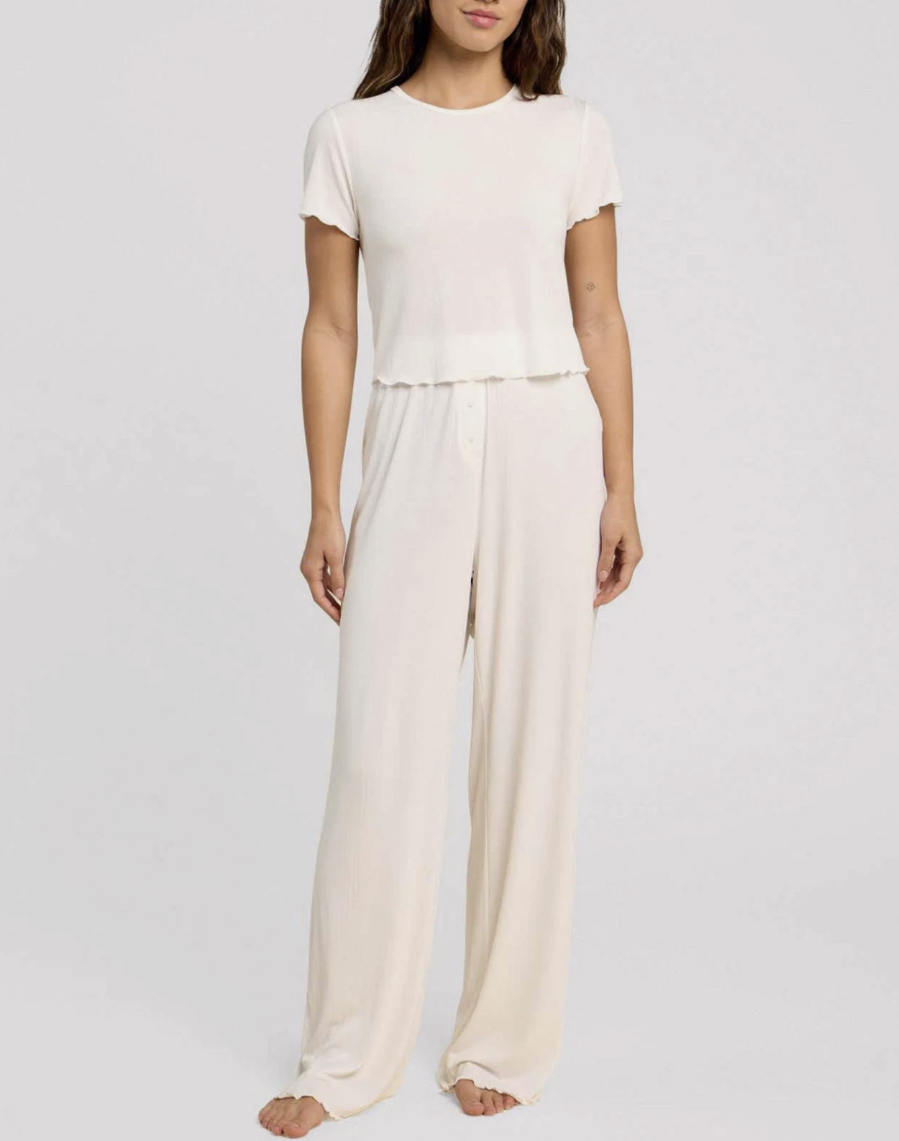 Nuuds Pearl Short Sleeve Soft Mini Rib Pajama Tee