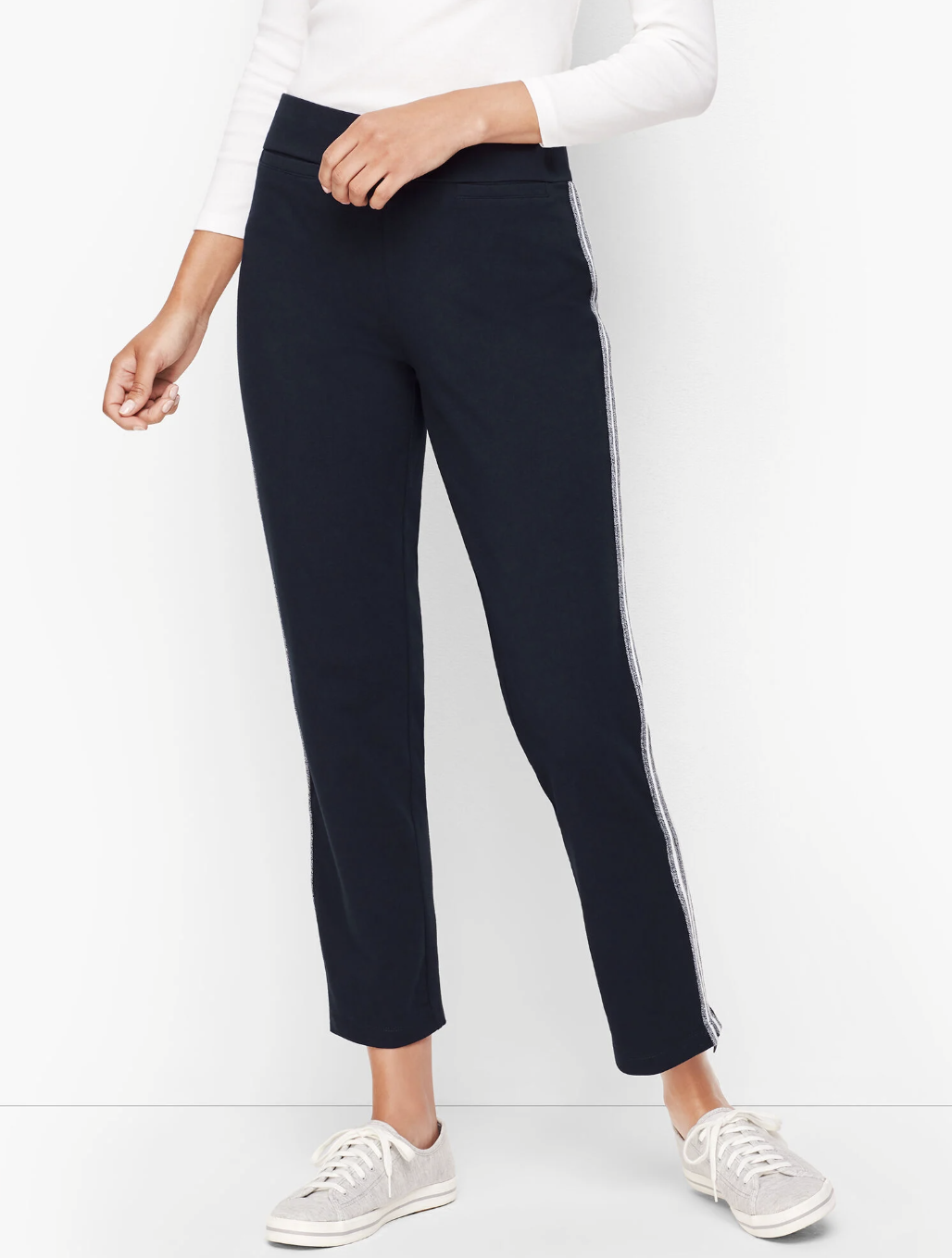 A fun side stripe gives our yoga ankle pants an irresistibly sporty look.