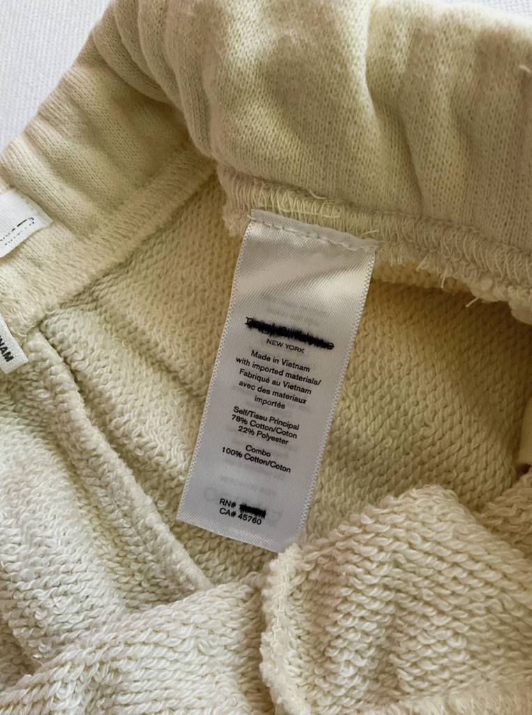 Rag & Bone Ecru French Terry Pockets Elastic Hems Sweatpants