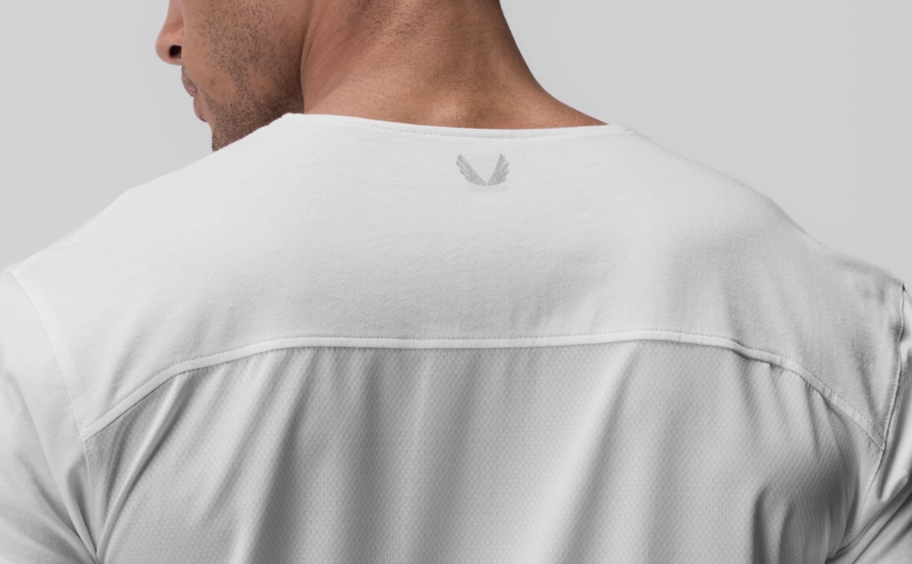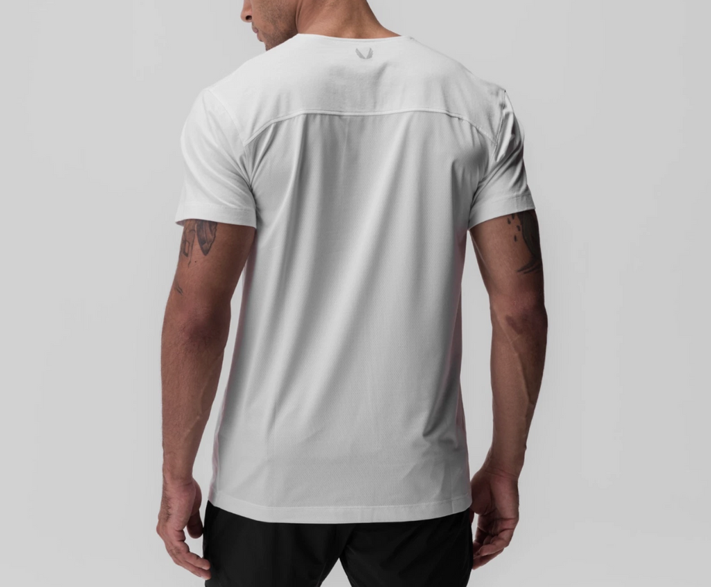 Standard fit shirt with hybrid performance capabilities. The main body is constructed from CottonPlus™, a high-performance cotton blend, and the shirt features a breathable Silver-Lite™ mesh back panel. The clean design lines and thin hem neckline offer a refined aesthetic. Finished with a subtle reflective wings logo on the back of the neck.