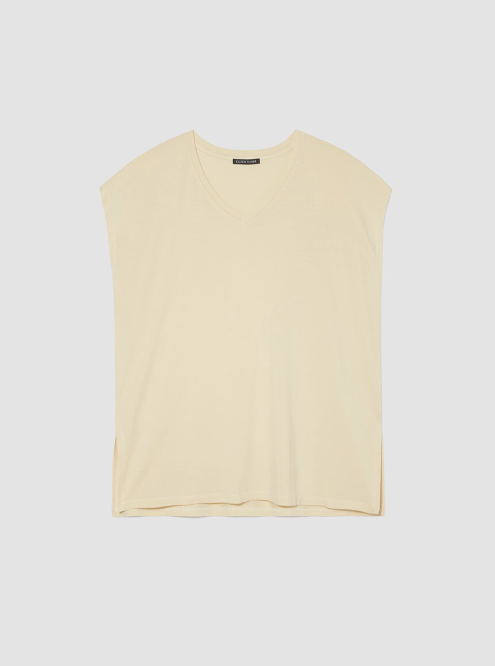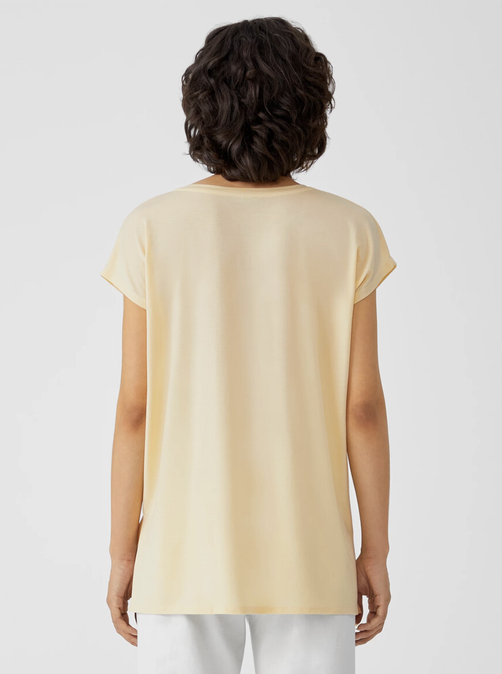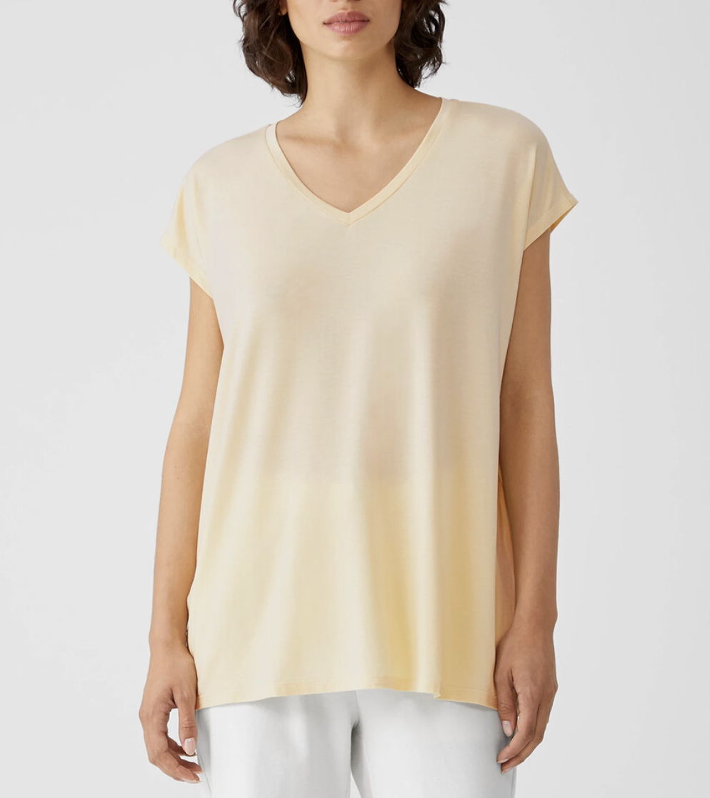 Eileen Fisher Yellow Fine Jersey Long Length V-Neck Square Top