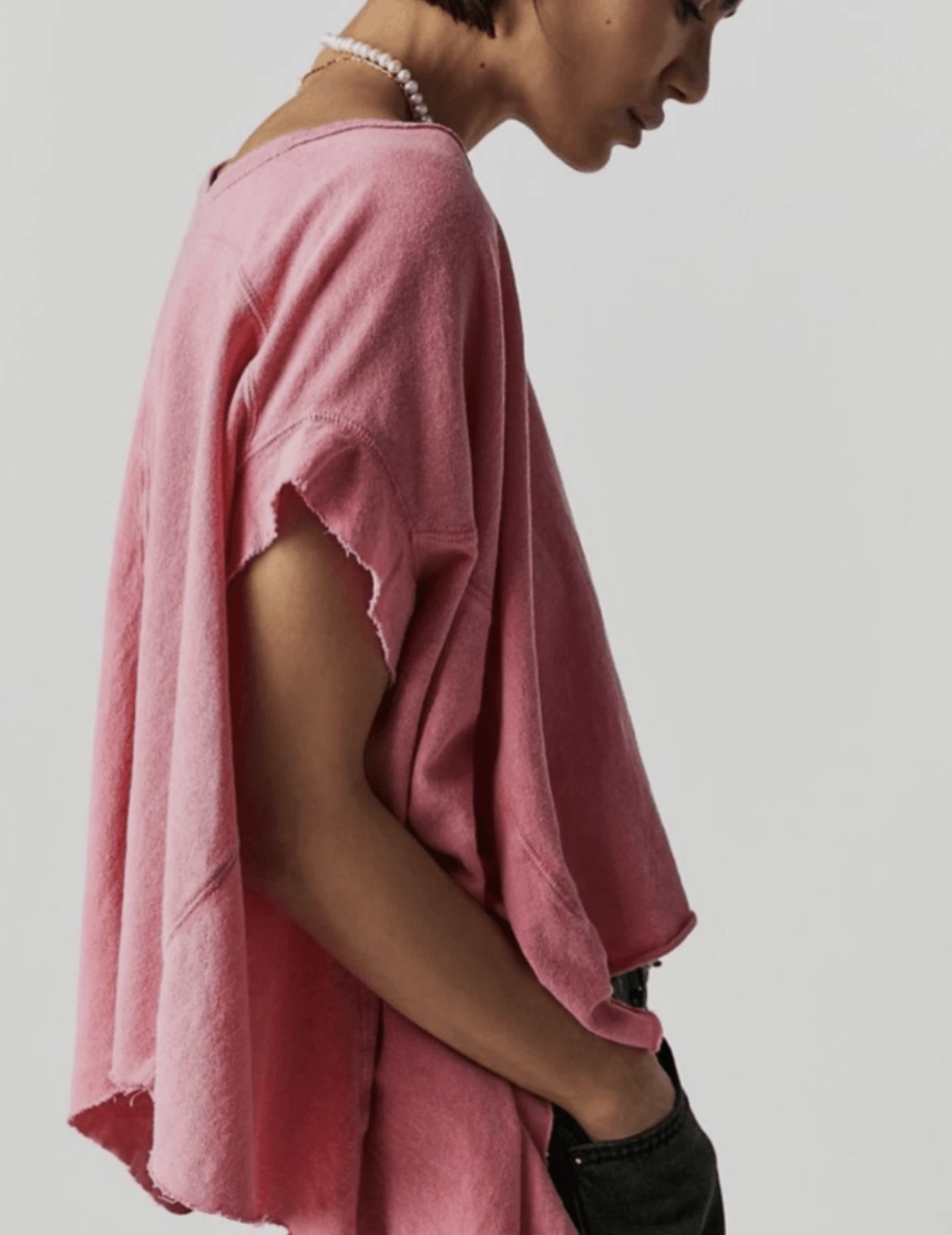 The definition of an effortless essential, this goes-with-anything tee is featured in a slouchy, relaxed fit with lower sides for shape and worn hems for a true lived-in look.