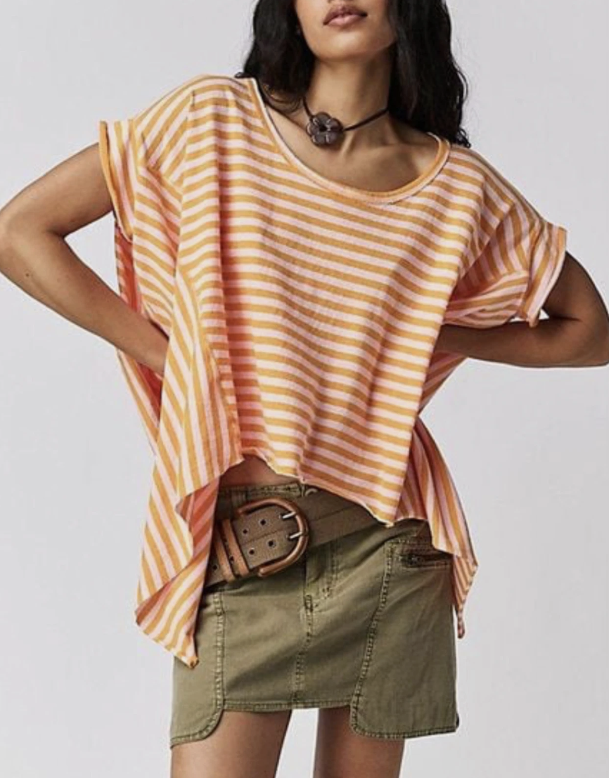 Free People We The Free Orange Pink Striped Short Sleeve Care FP Angel Tee
