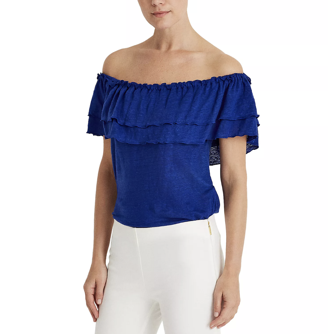 Lauren Ralph Lauren Royal Blue Ruffle Off-the-Shoulder Top