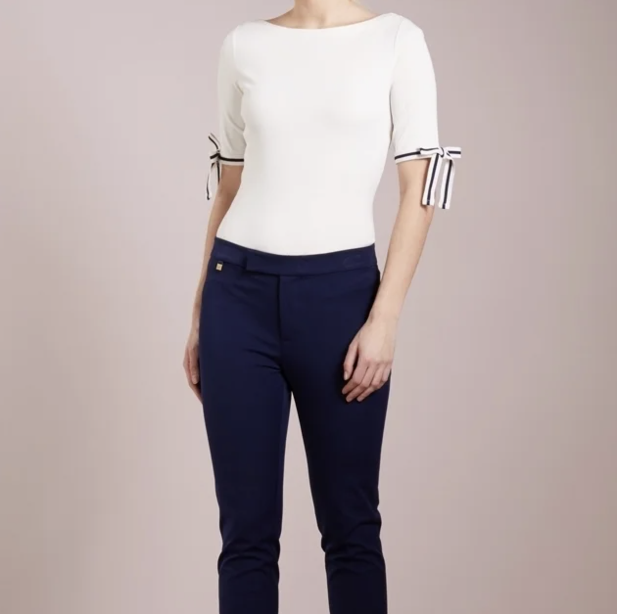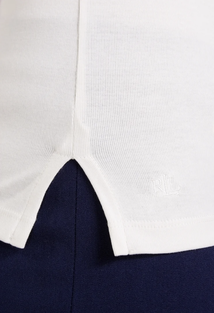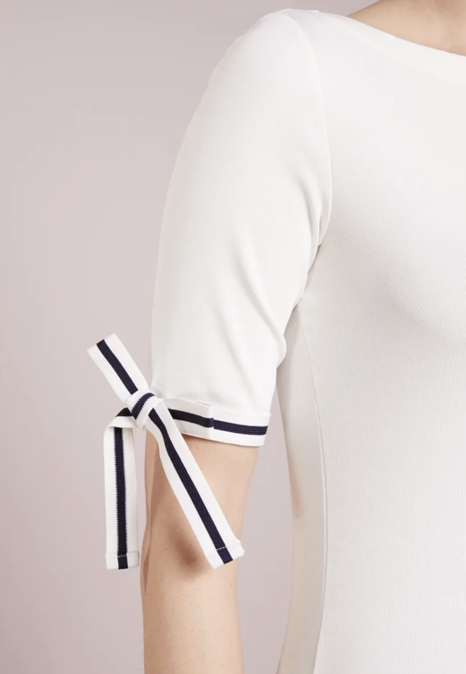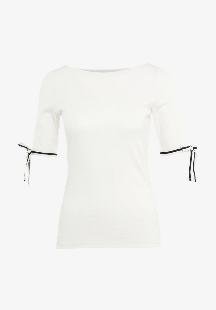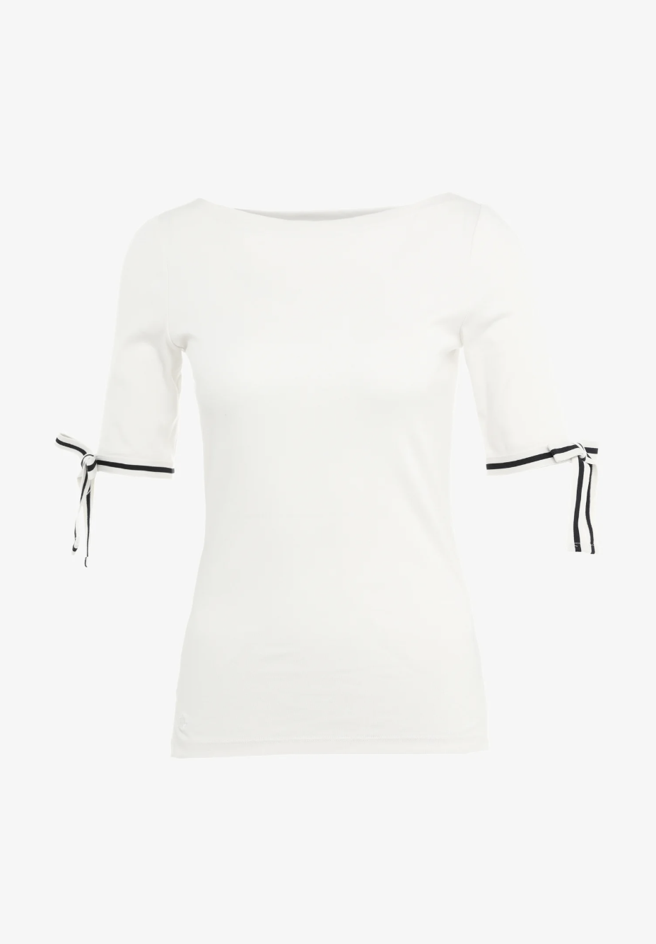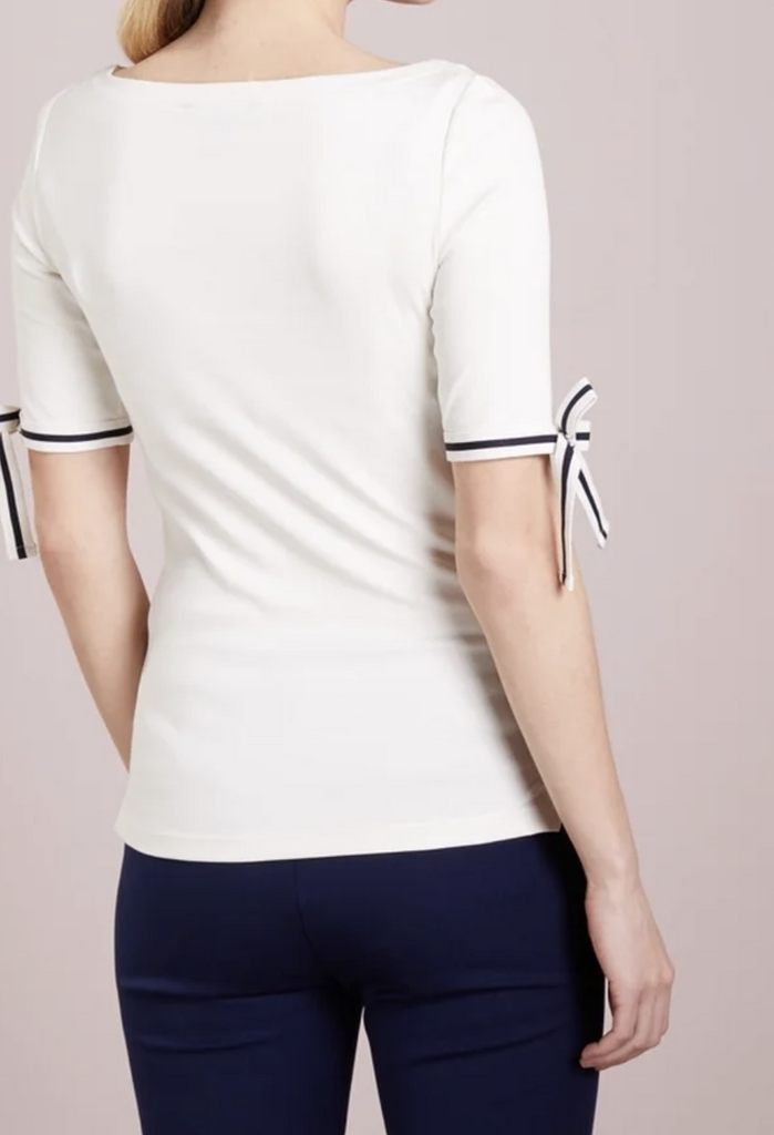 Lauren Ralph Lauren White Boat Neck Contrast Bow-Sleeve Top