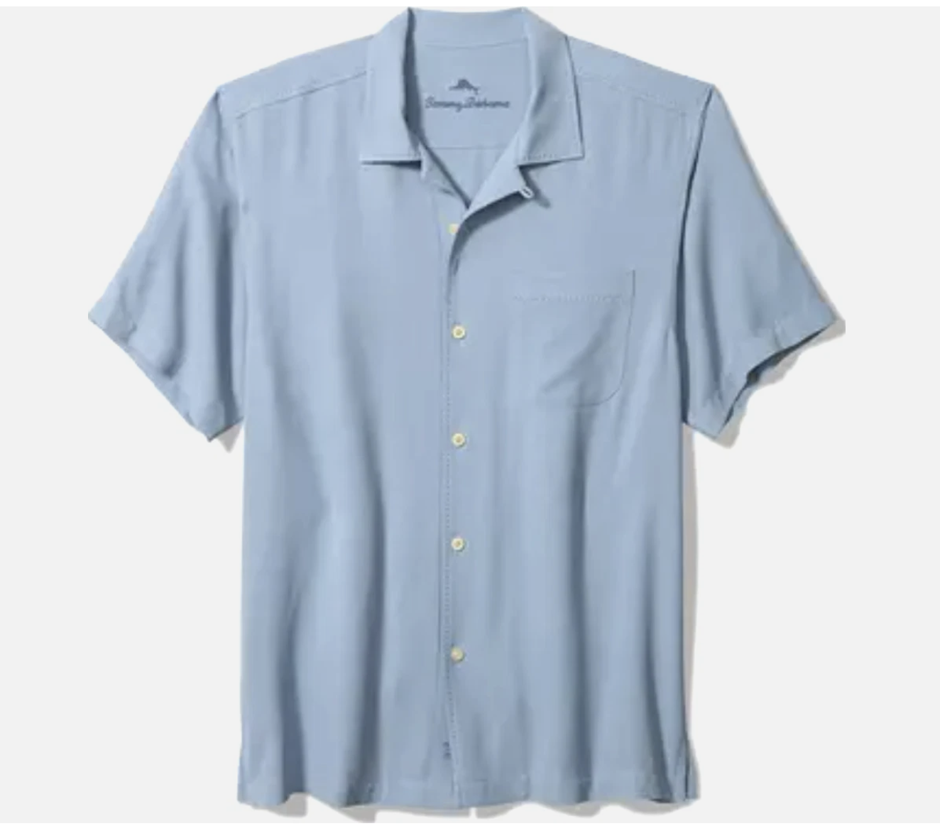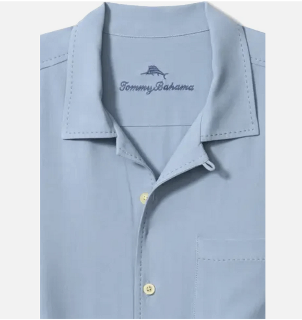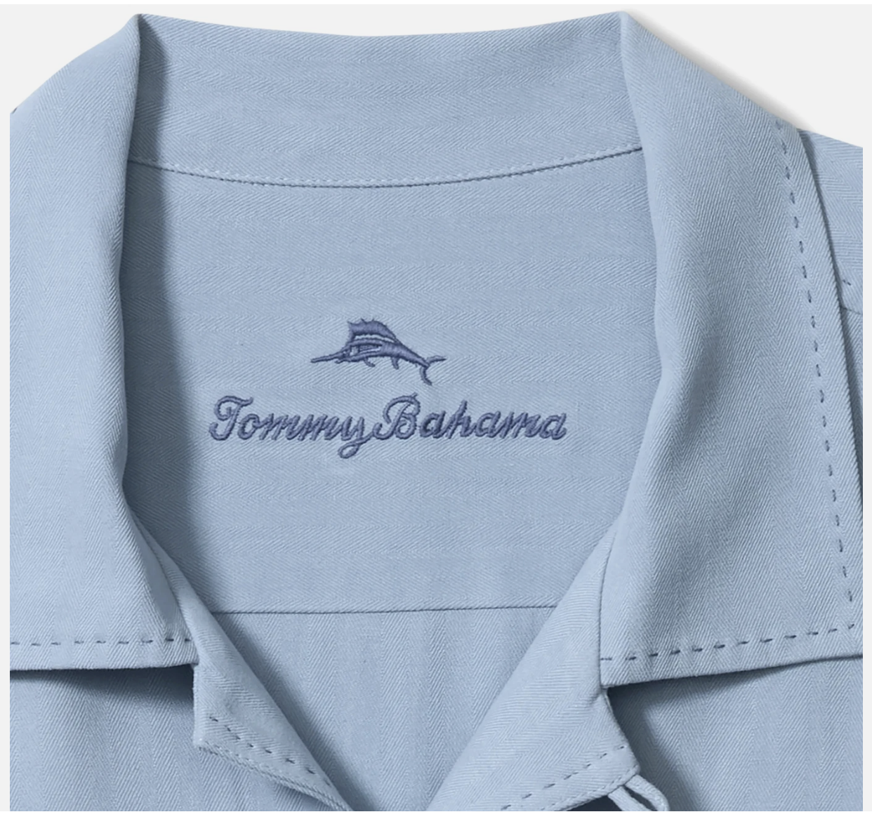Tommy Bahama Mountain Bluebell Hawaiian Herringbone Silk Camp Shirt