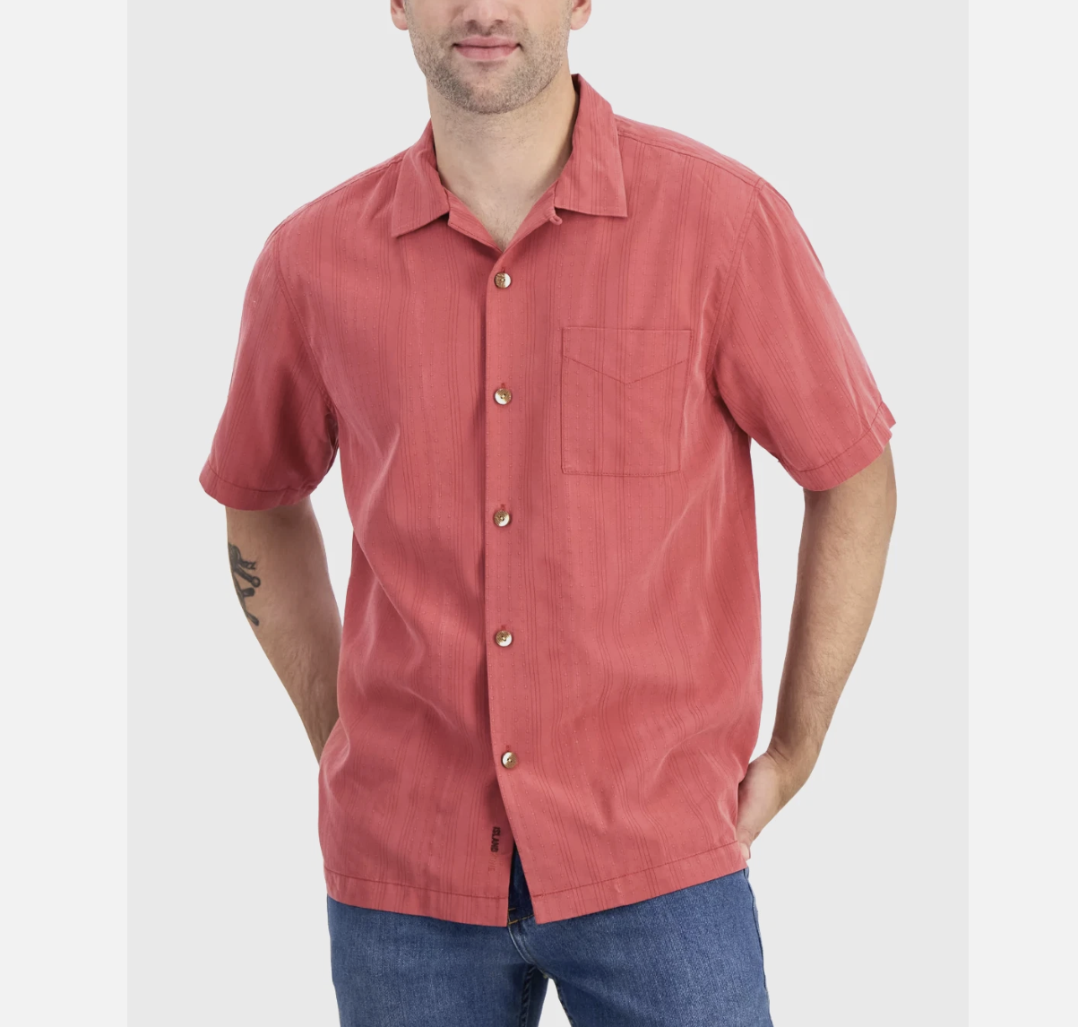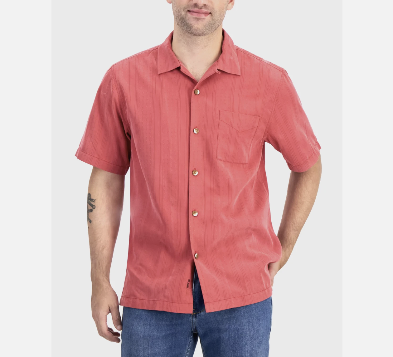 Tommy Bahama Pure Coral Coconut Point Tide Vista Dotted Stripe Camp Shirt