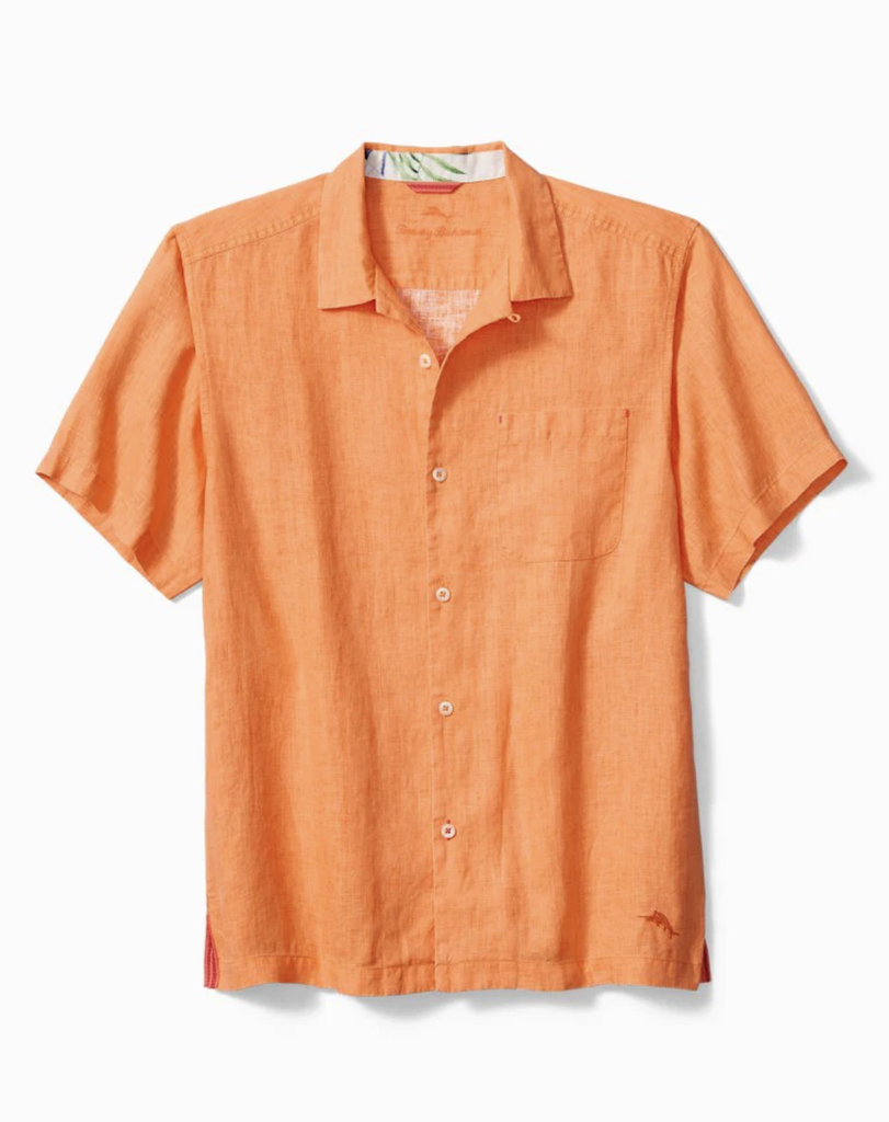 Tommy Bahama Peach Melt Short Sleeve Sea Glass Camp Linen Shirt
