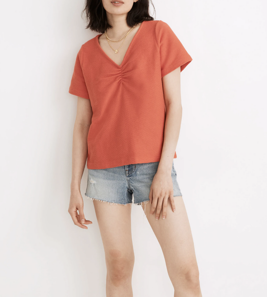 Madewell Blood Orange Ottoman Jacquard Ruched-Front Top
