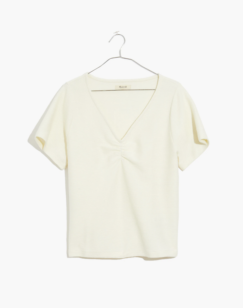 Madewell Antique Cream Ottoman Jacquard Ruched-Front Top