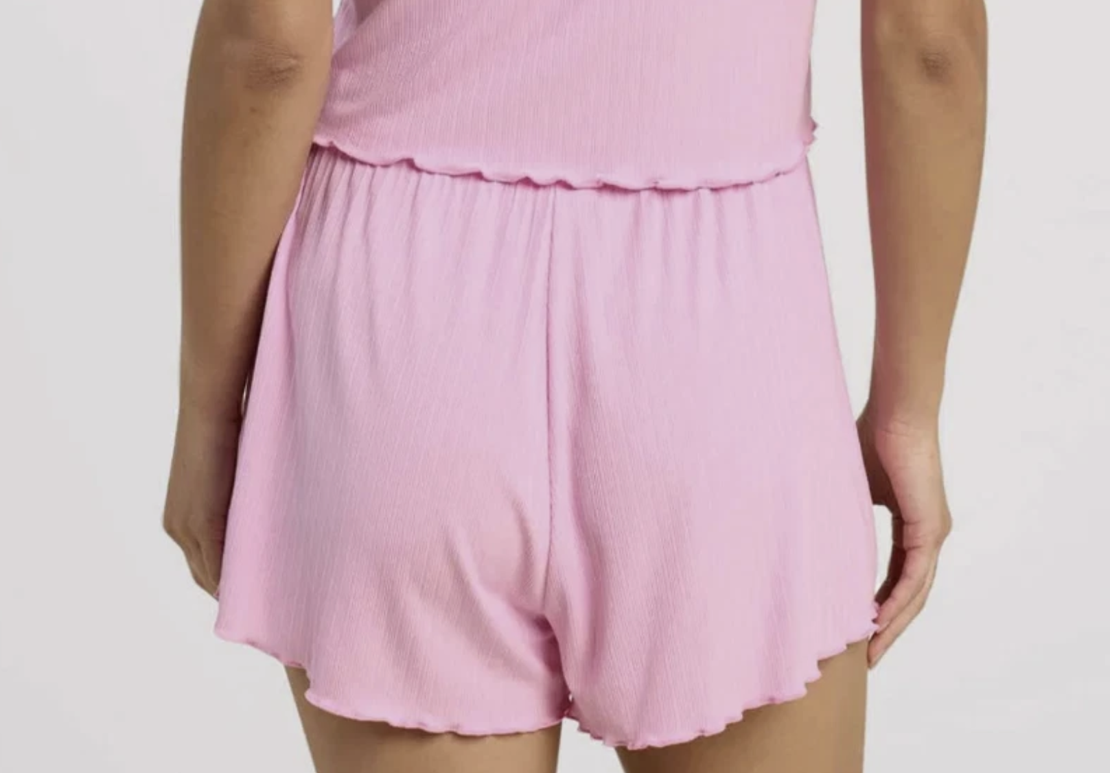 Nuuds Bubblegum Pink Ruffled Hem Mini Rib Cheeky Short