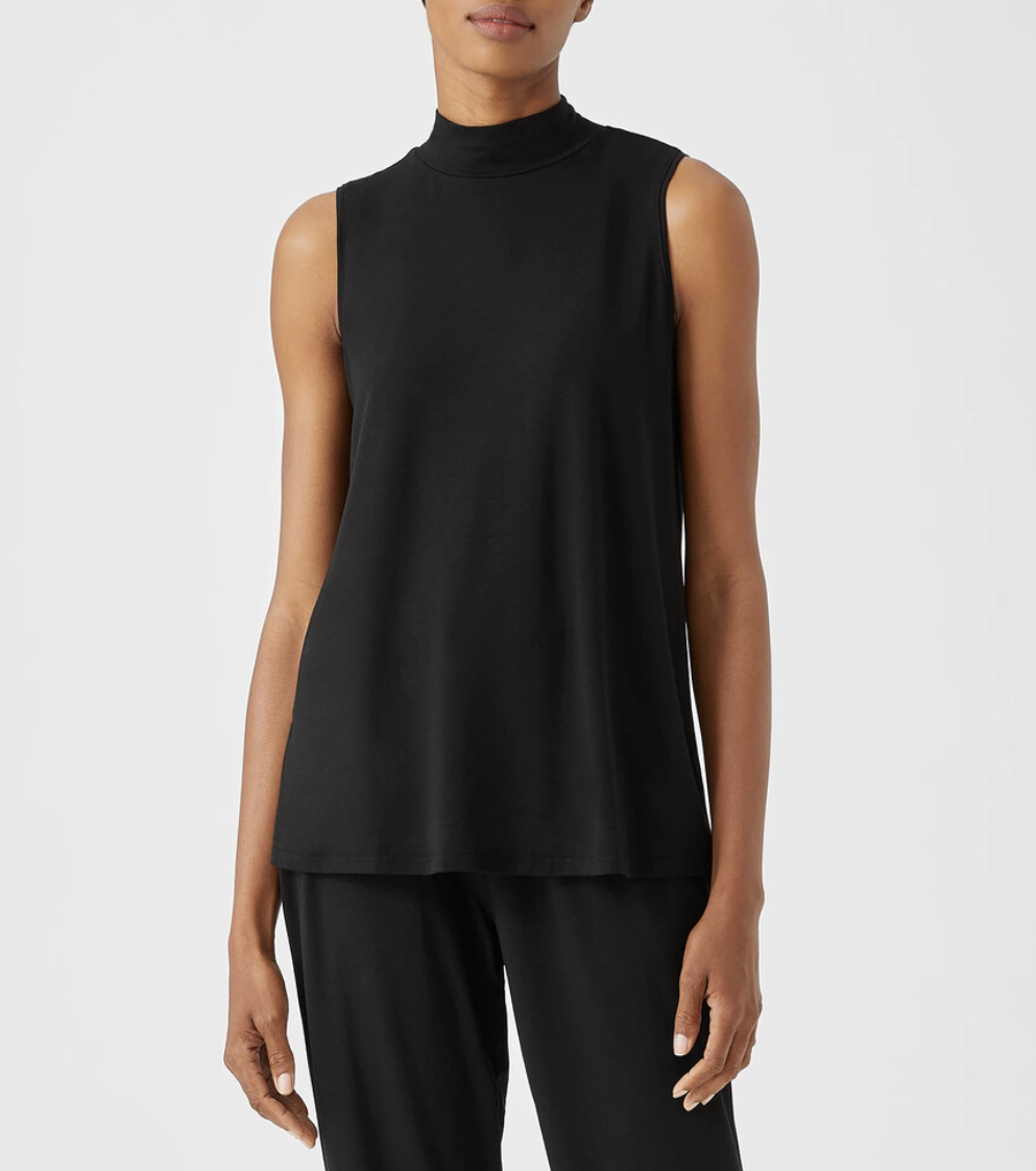 An elegant mock neck tank ready for work or play. In our sleek and sustainable Fine Jersey.
