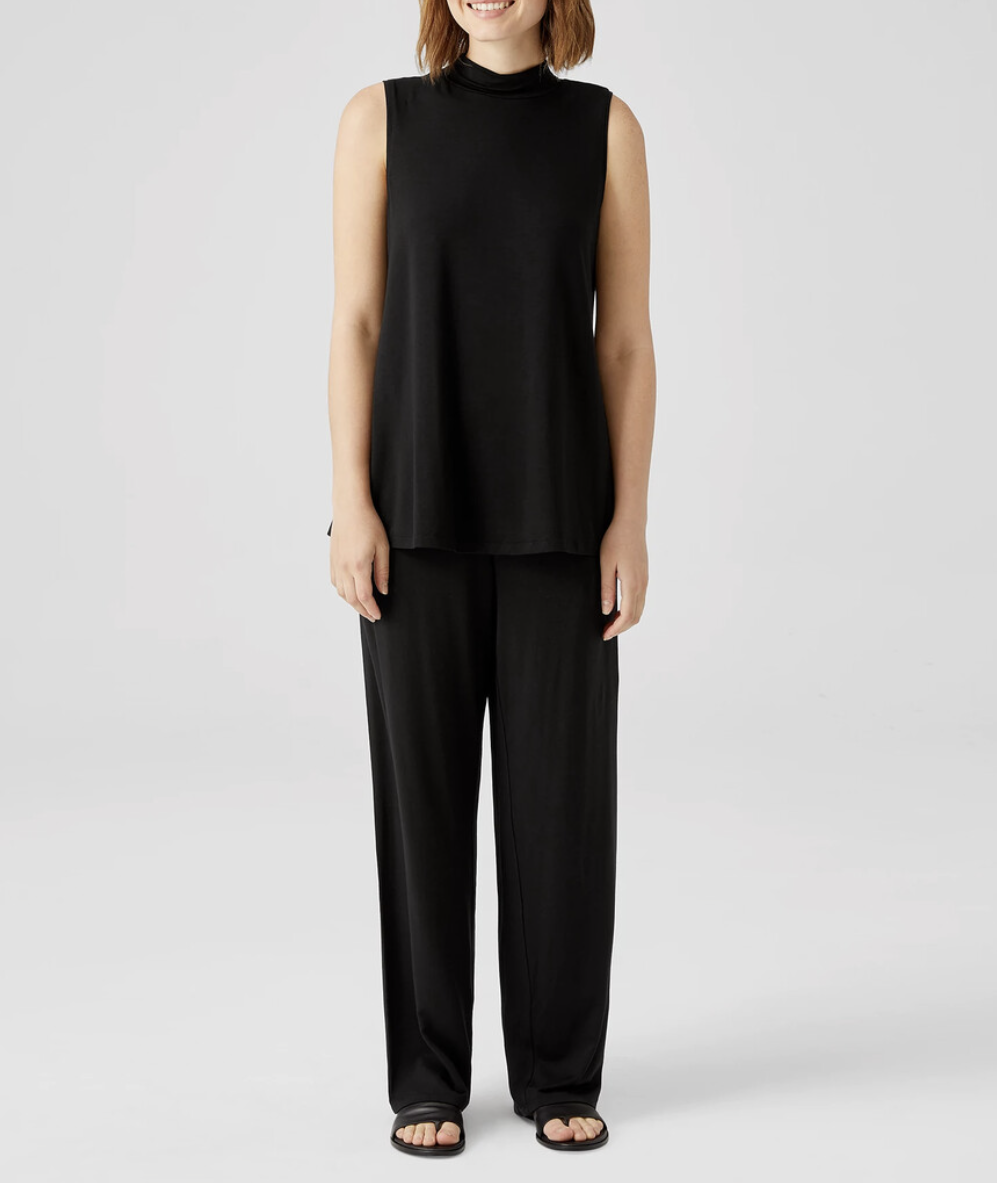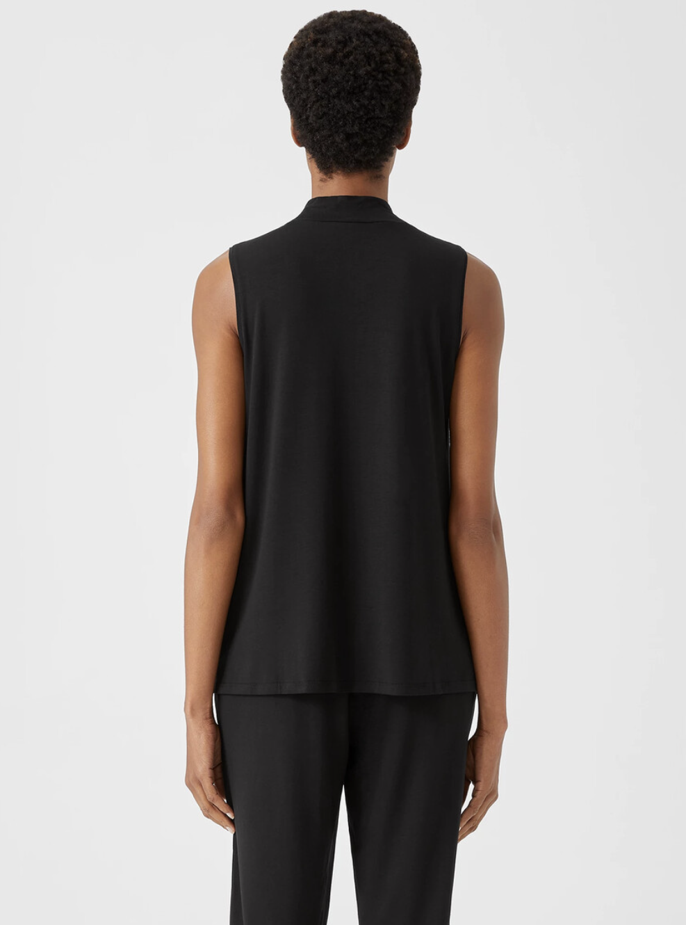 Eileen Fisher Black Long Length Fine Jersey Mock Neck Tank
