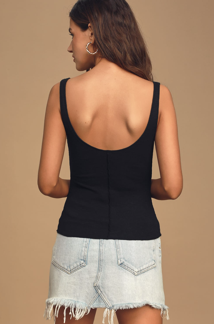 Free People Black Tellin' Me Ribbed Snap Front Tank Top