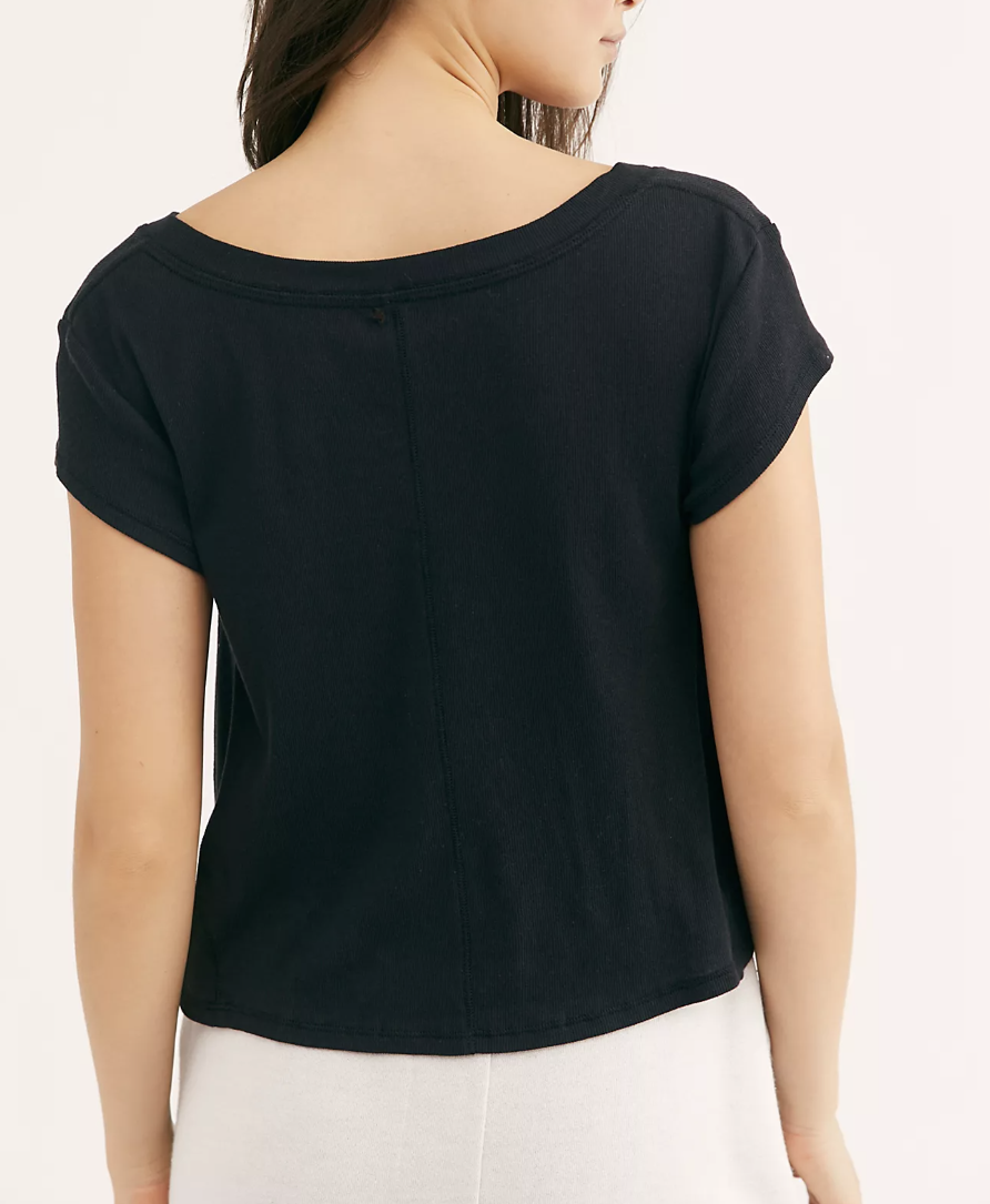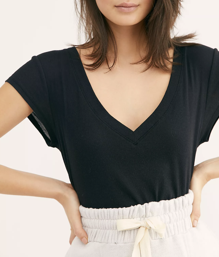 Free People Movement Black Short Sleeve Ribbed V-Neck Easy Tee Top