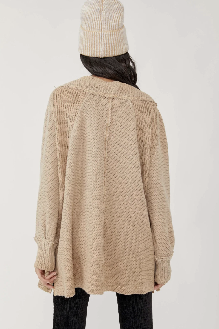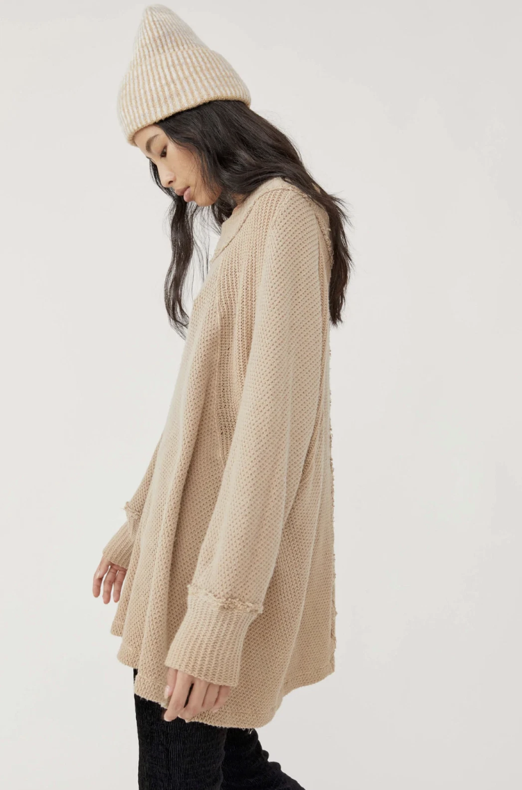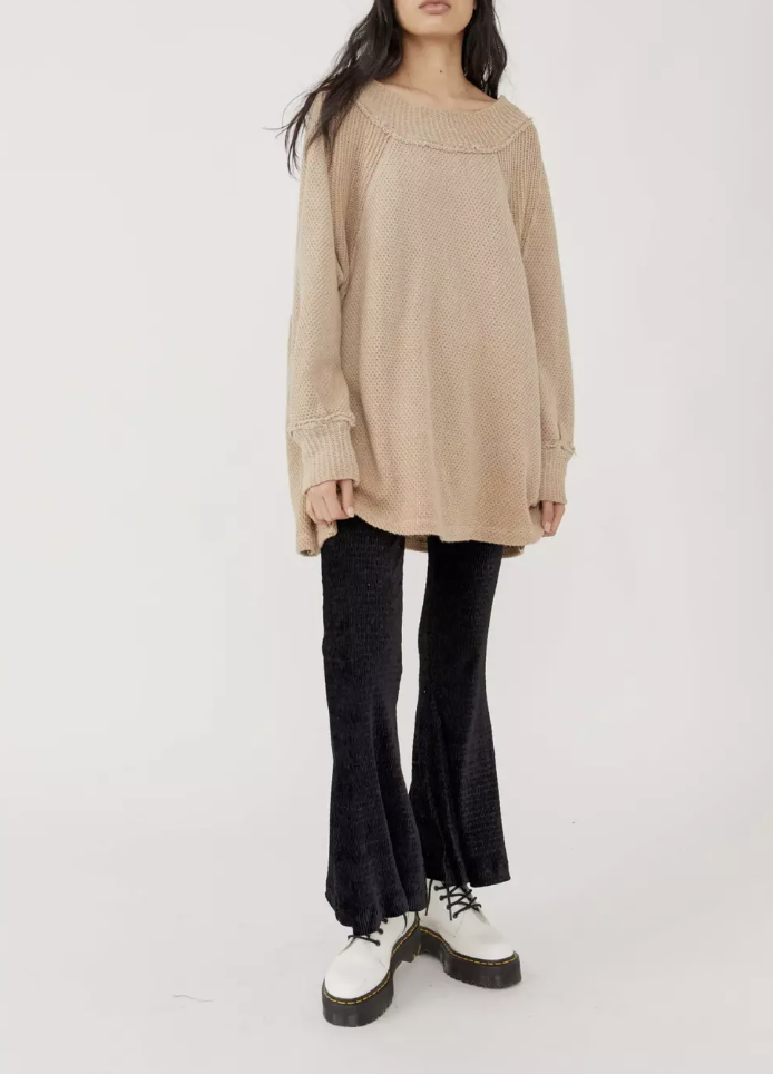 Free People “She’s a Keeper” – fabulous cotton-blend tunic sweater featuring an easy fit, mock neck, textured knits, ribbed neck and cuffs, side slits, medium weight fabric, slightly oversize fit. A very cool and cozy style, indeed!