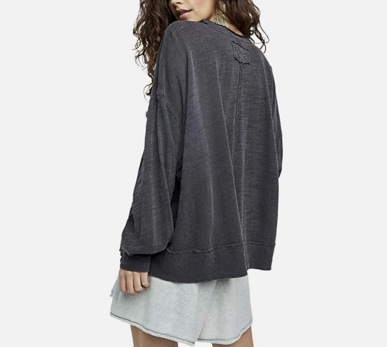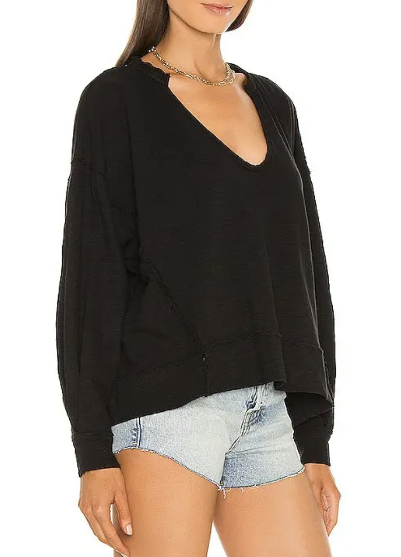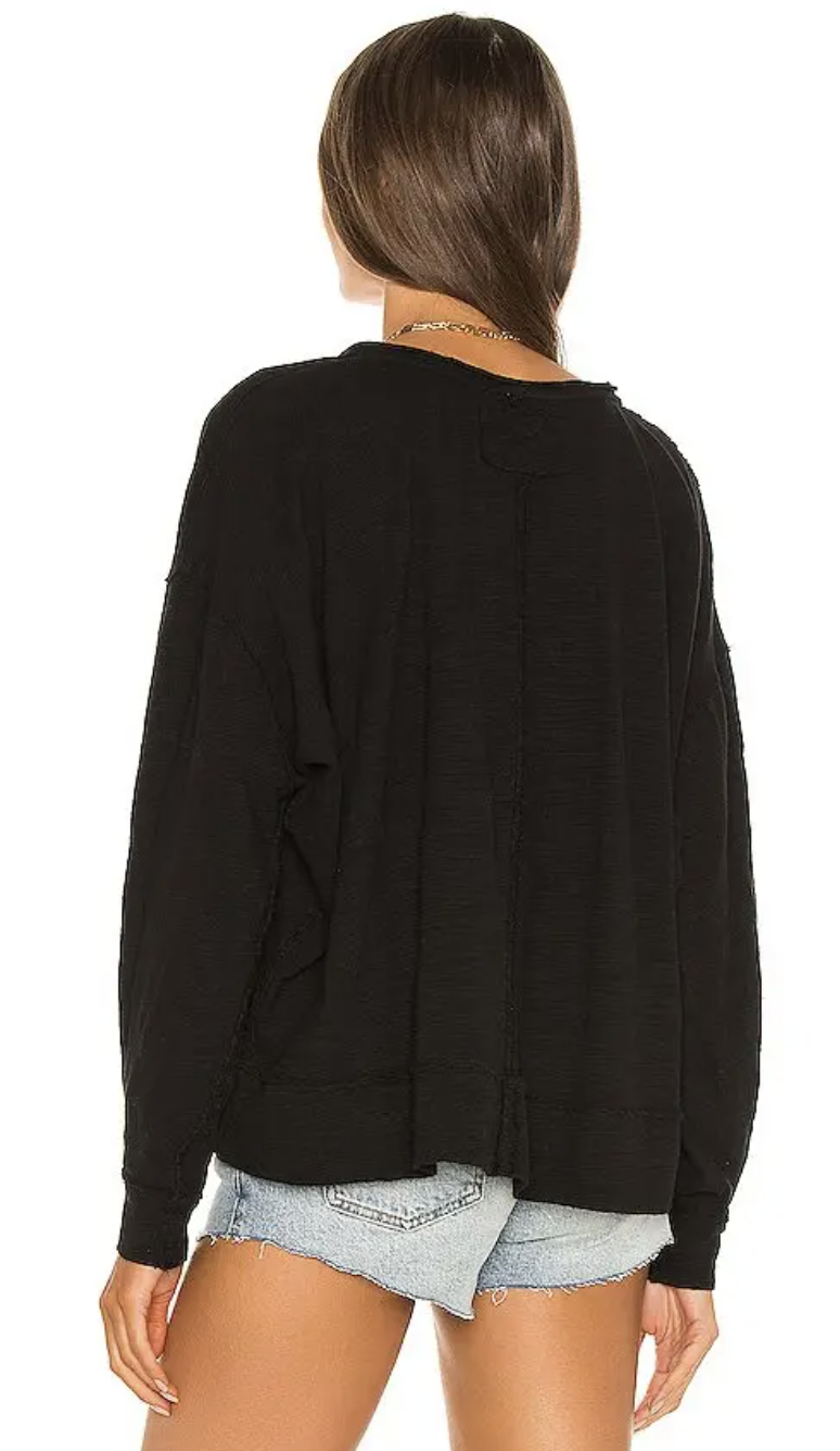 Free People We The Free Black Long Sleeve Vega Pullover Top