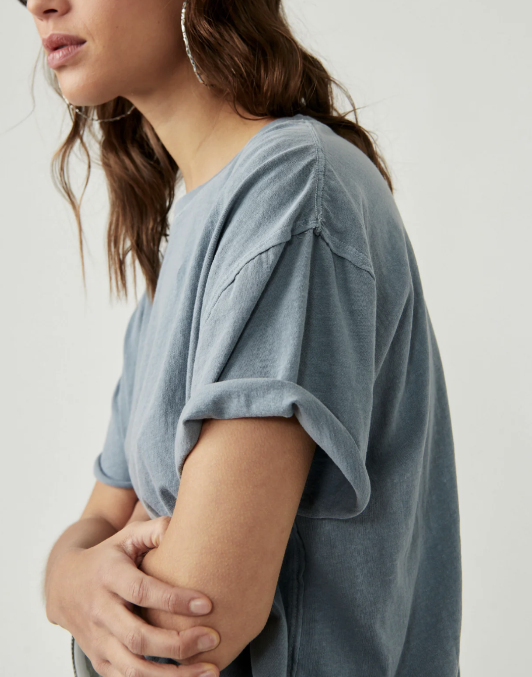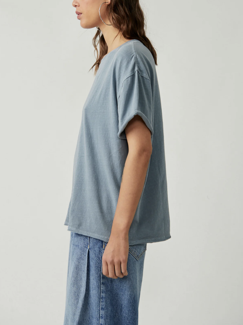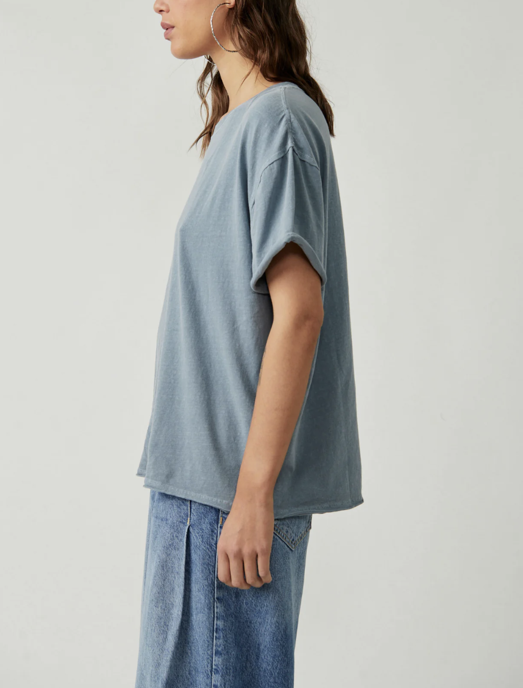 Free People - We The Free - Blue Mirage Crew Neck Raw Edge Seams Boxy Nina Tee