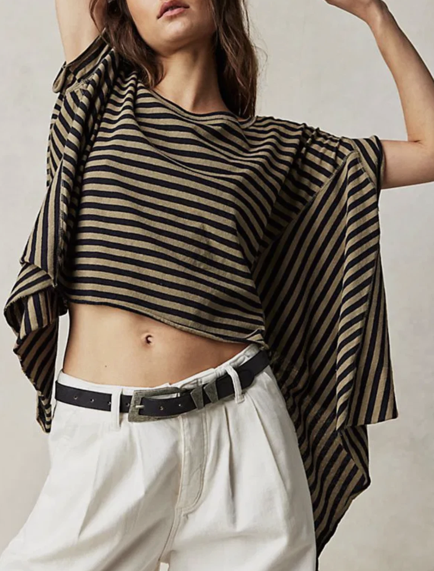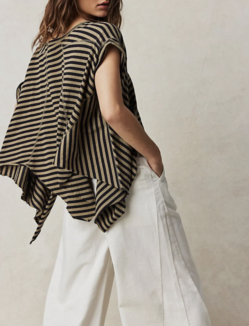 Free People We The Free Green Black Striped Short Sleeve Care FP Angel Tee