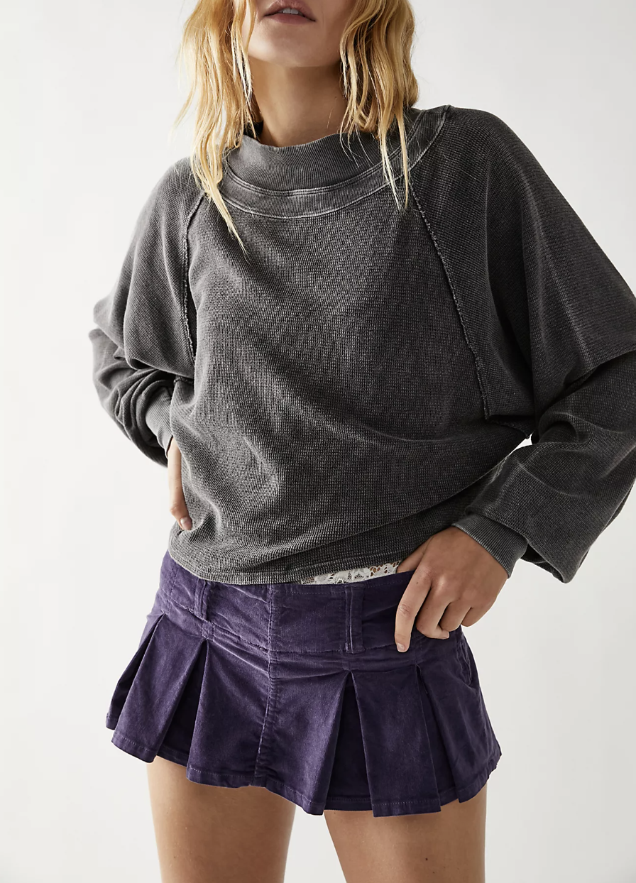 Features: Turtle-inspired neckline; Waffle knit fabrication; Slightly exaggerated sleeves