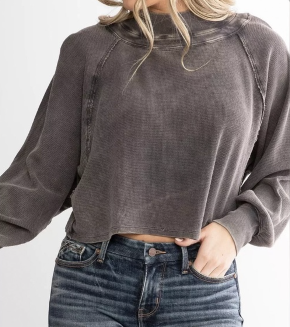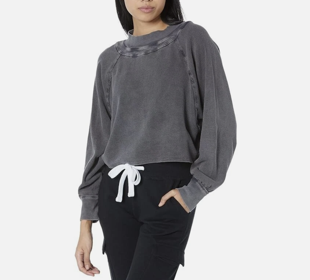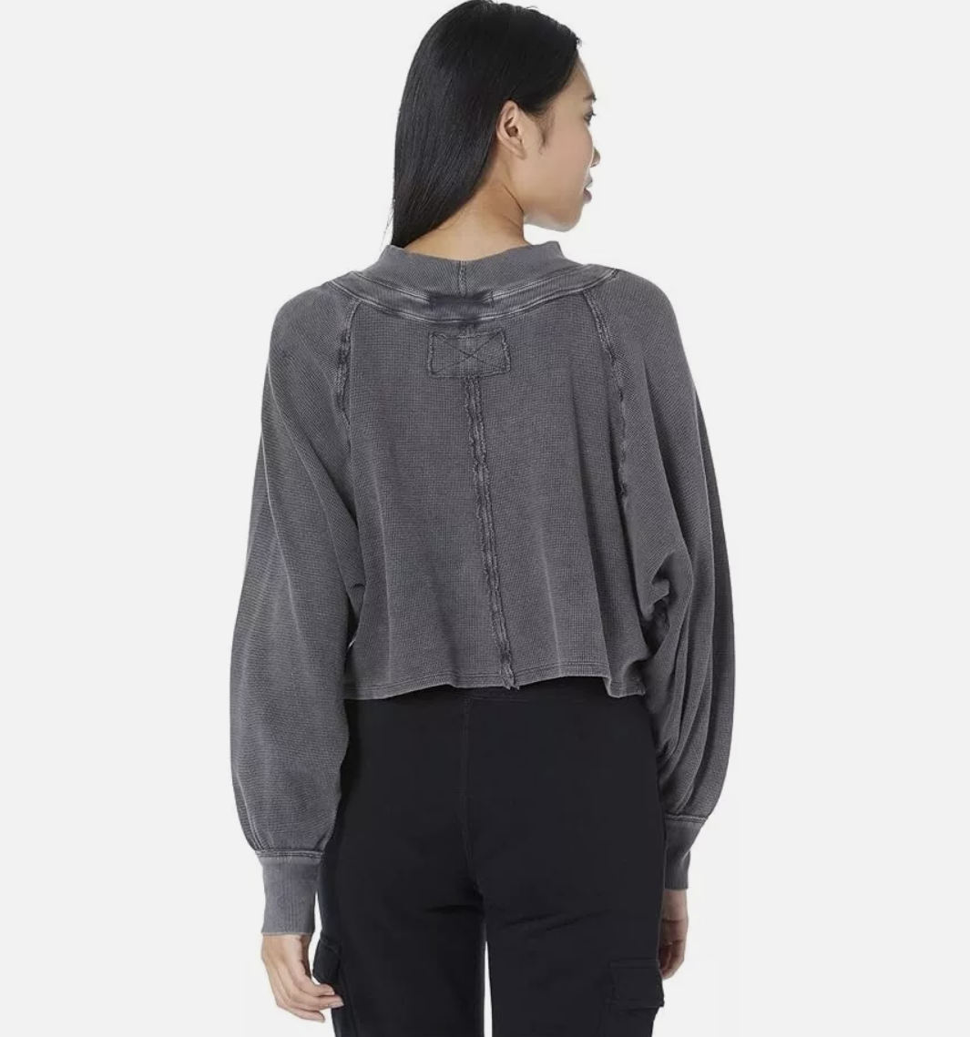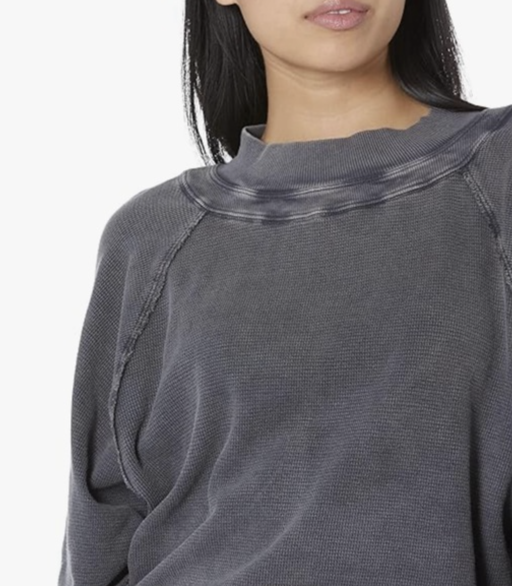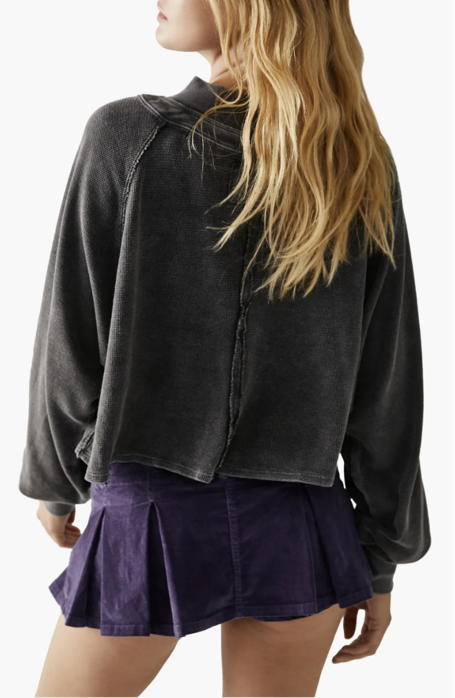 Free People We The Free Washed Black Fun Times Turtle Thermal Pullover Top